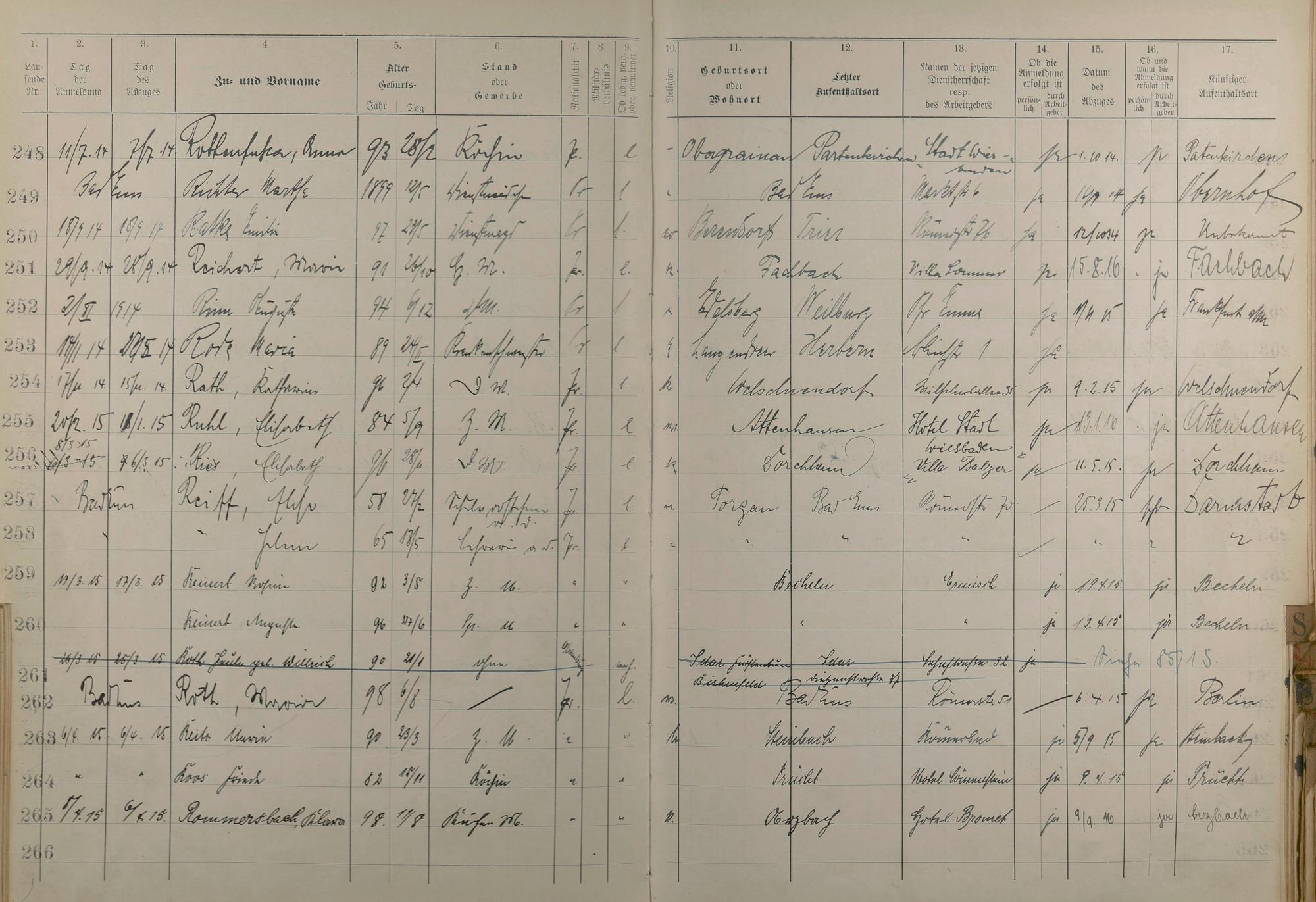 Melderegister der Gewerbegehilfinnen, Gesellinnen und Dienstbotinnen 1911 - Apr. 1915