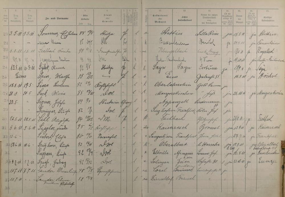 Melderegister der Gewerbegehilfinnen, Gesellinnen und Dienstbotinnen 1911 - Apr. 1915