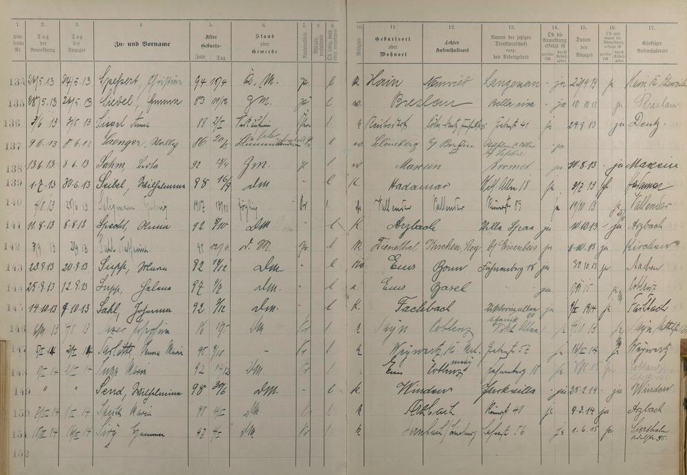 189: Melderegister der Gewerbegehilfinnen, Gesellinnen und Dienstbotinnen 1911 -...