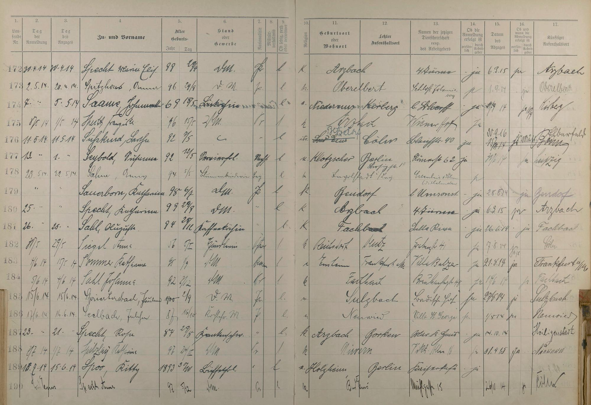 189: Melderegister der Gewerbegehilfinnen, Gesellinnen und Dienstbotinnen 1911 -...