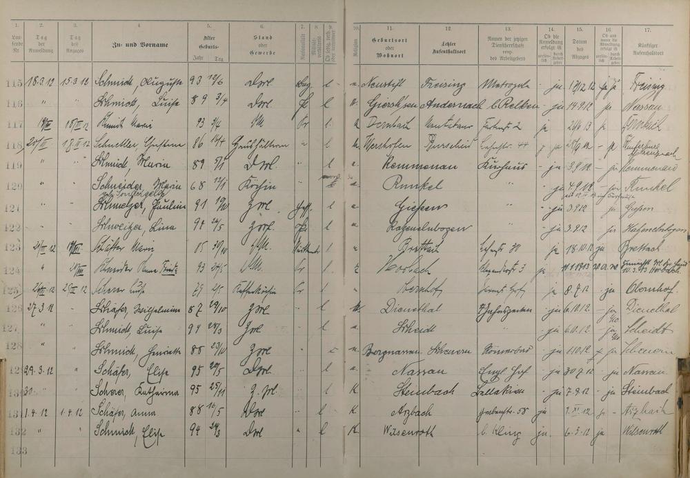 Melderegister der Gewerbegehilfinnen, Gesellinnen und Dienstbotinnen 1911 - Apr. 1915