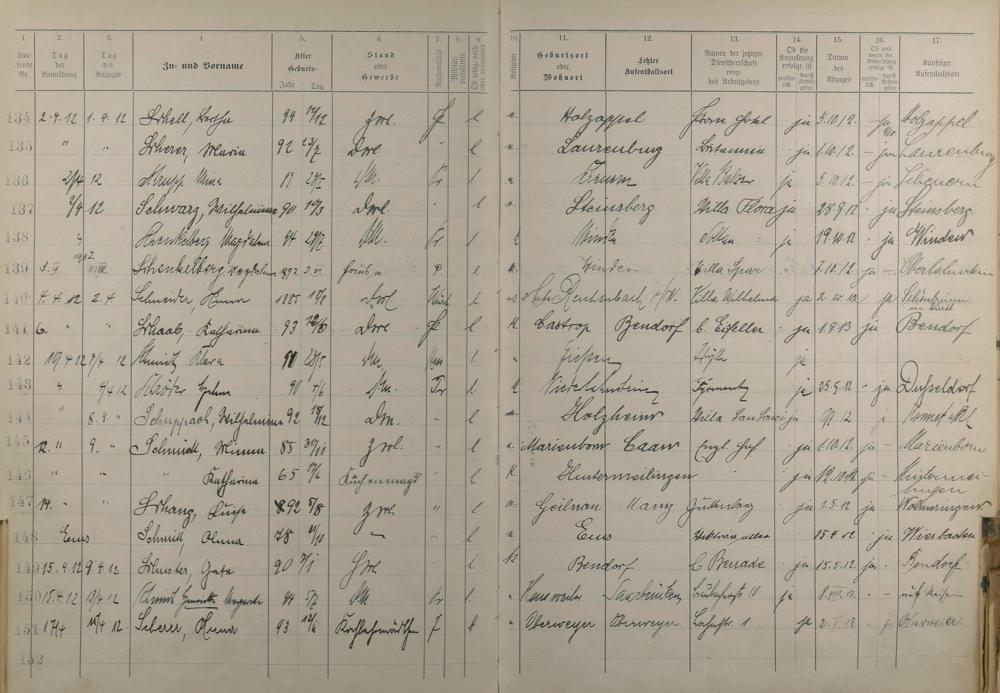 189: Melderegister der Gewerbegehilfinnen, Gesellinnen und Dienstbotinnen 1911 -...