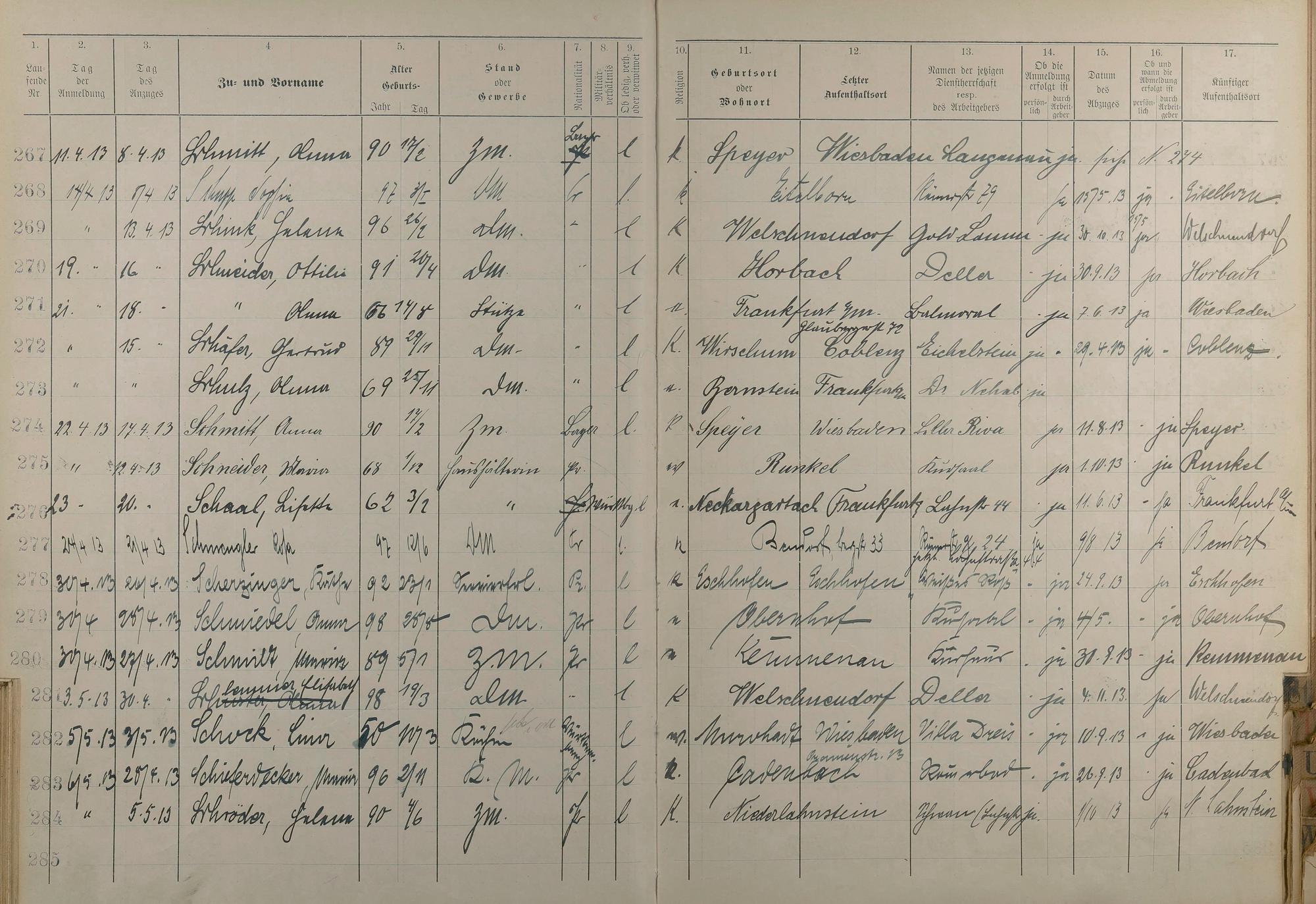 189: Melderegister der Gewerbegehilfinnen, Gesellinnen und Dienstbotinnen 1911 -...