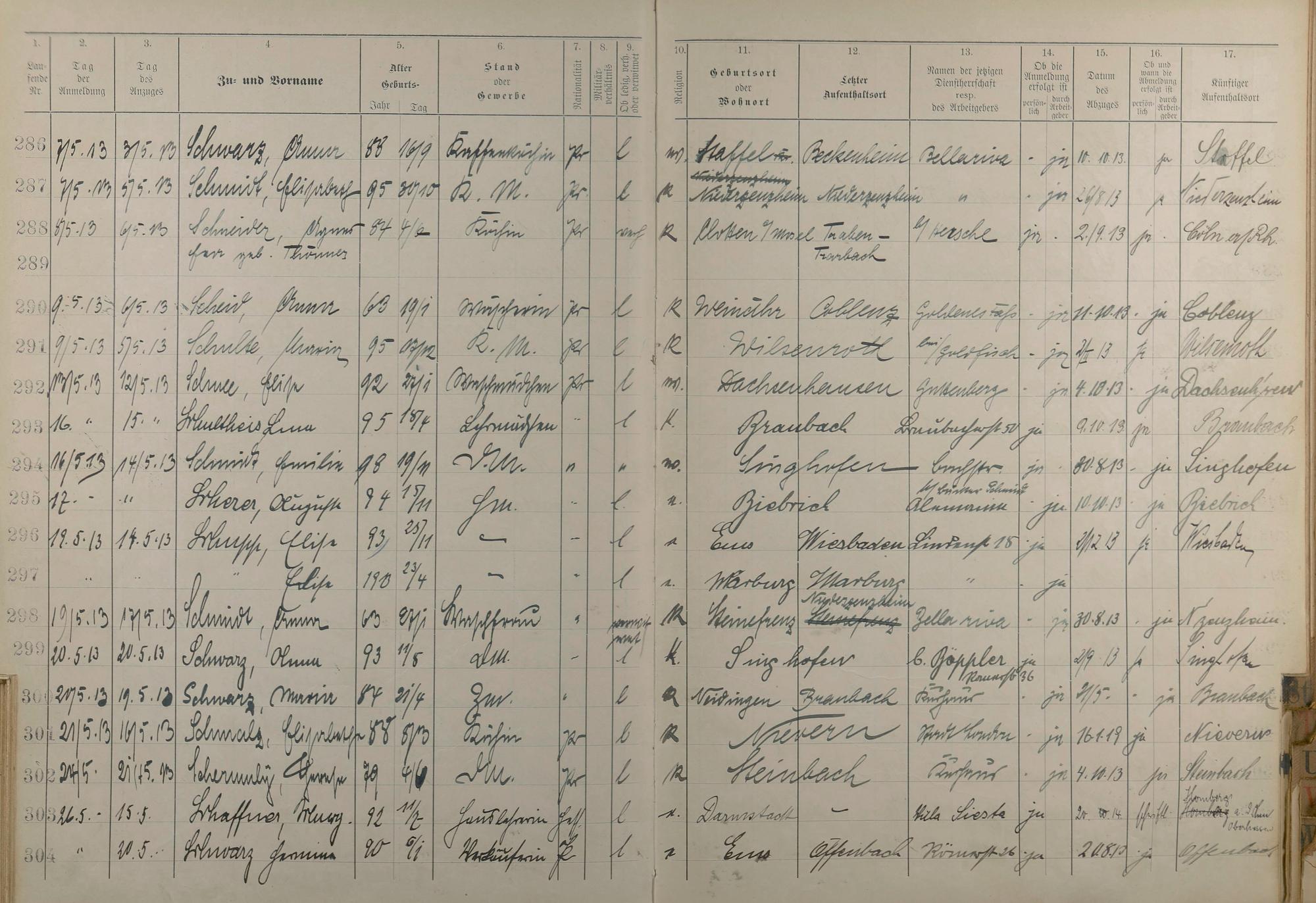 Melderegister der Gewerbegehilfinnen, Gesellinnen und Dienstbotinnen 1911 - Apr. 1915