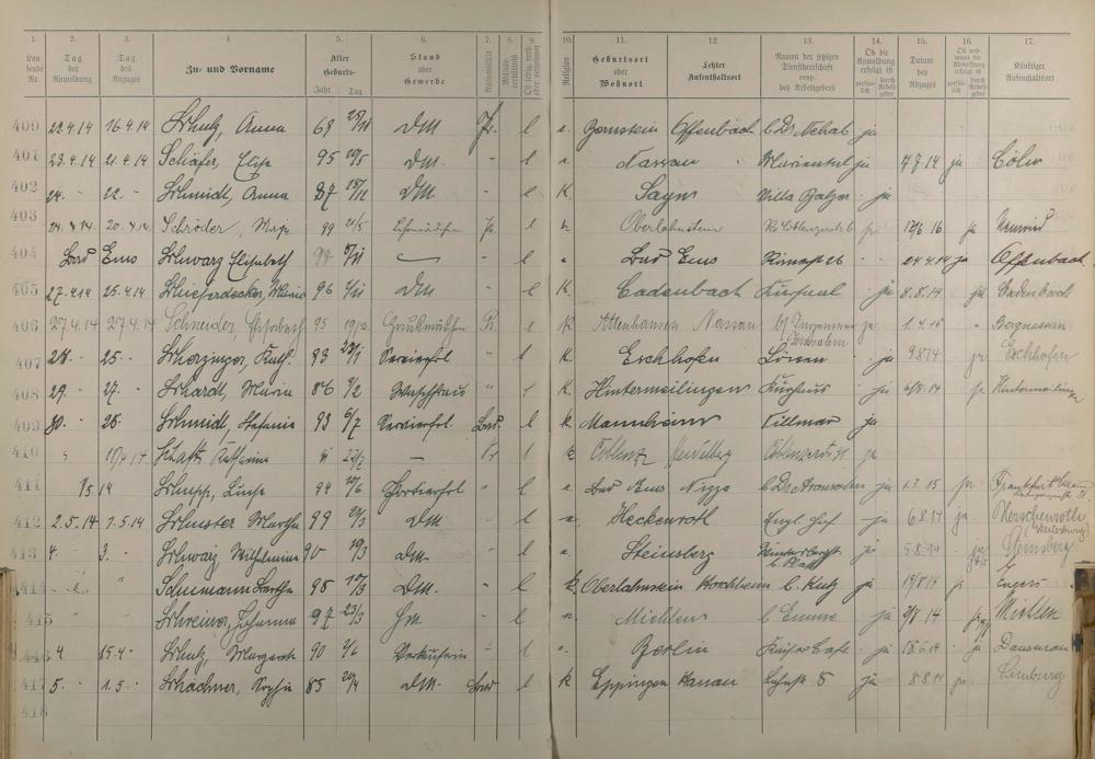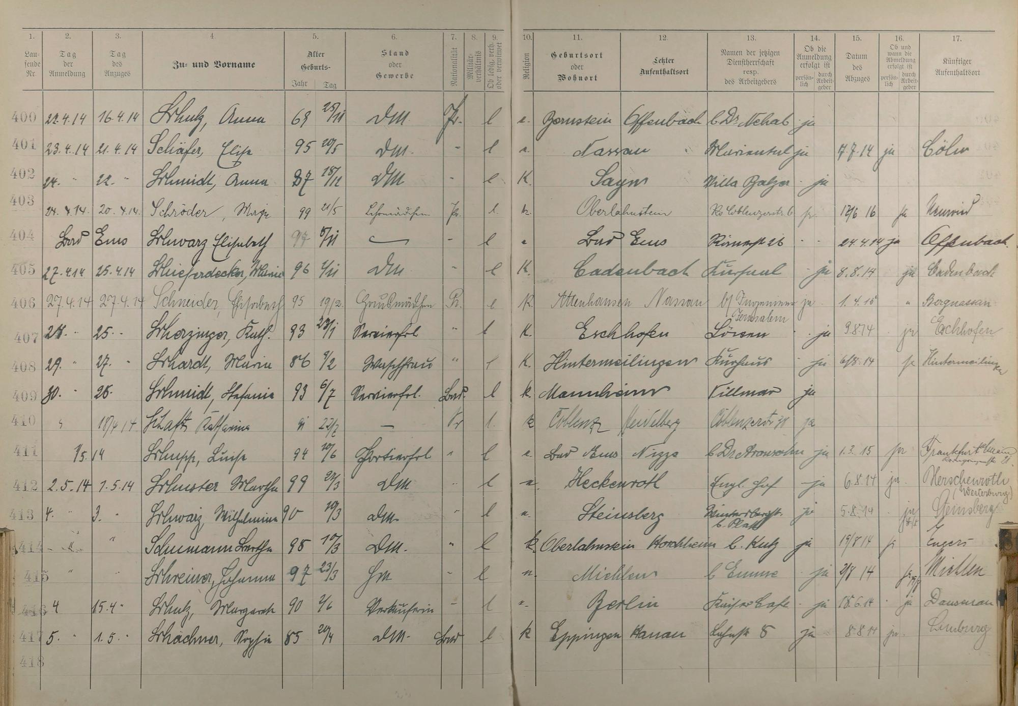 Melderegister der Gewerbegehilfinnen, Gesellinnen und Dienstbotinnen 1911 - Apr. 1915
