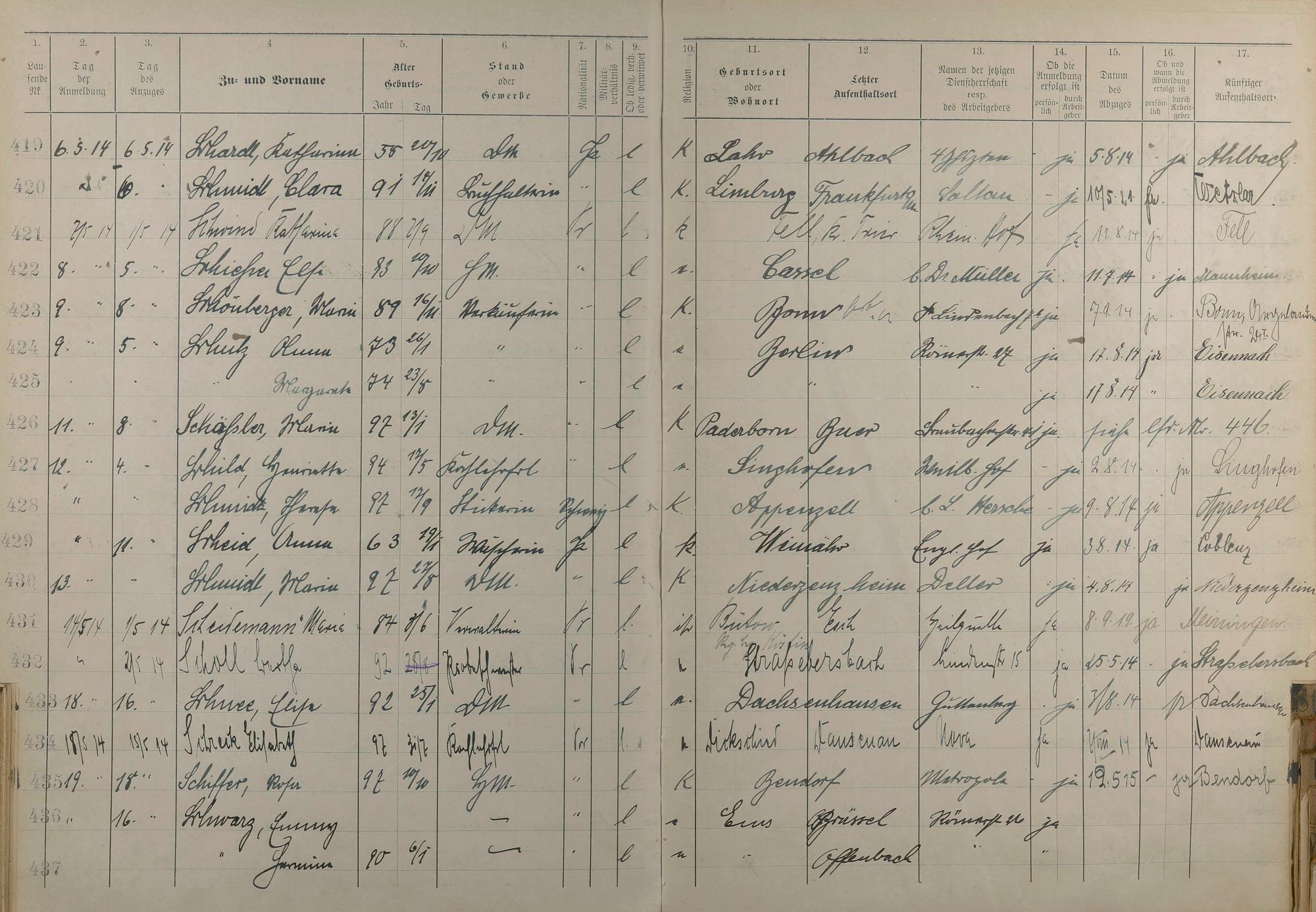 Melderegister der Gewerbegehilfinnen, Gesellinnen und Dienstbotinnen 1911 - Apr. 1915