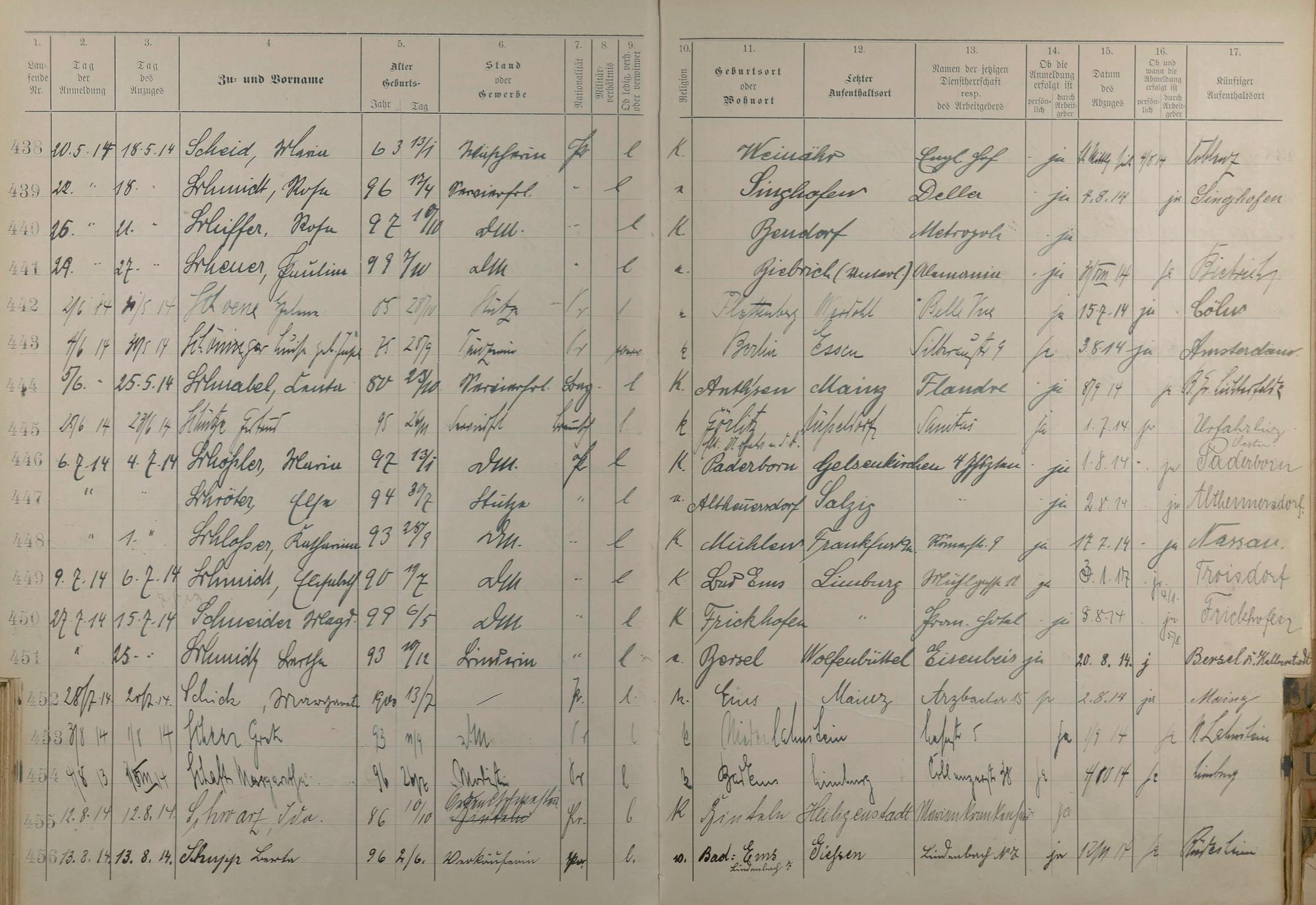 Melderegister der Gewerbegehilfinnen, Gesellinnen und Dienstbotinnen 1911 - Apr. 1915