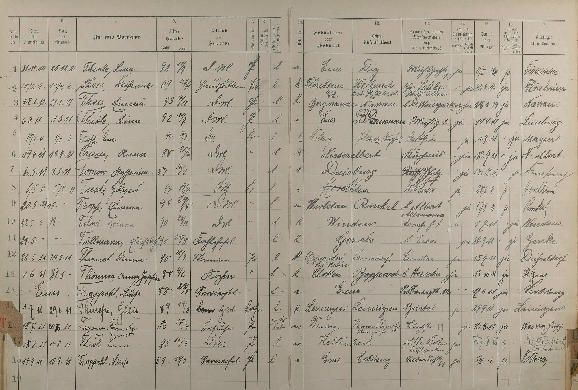 Melderegister der Gewerbegehilfinnen, Gesellinnen und Dienstbotinnen 1911 - Apr. 1915