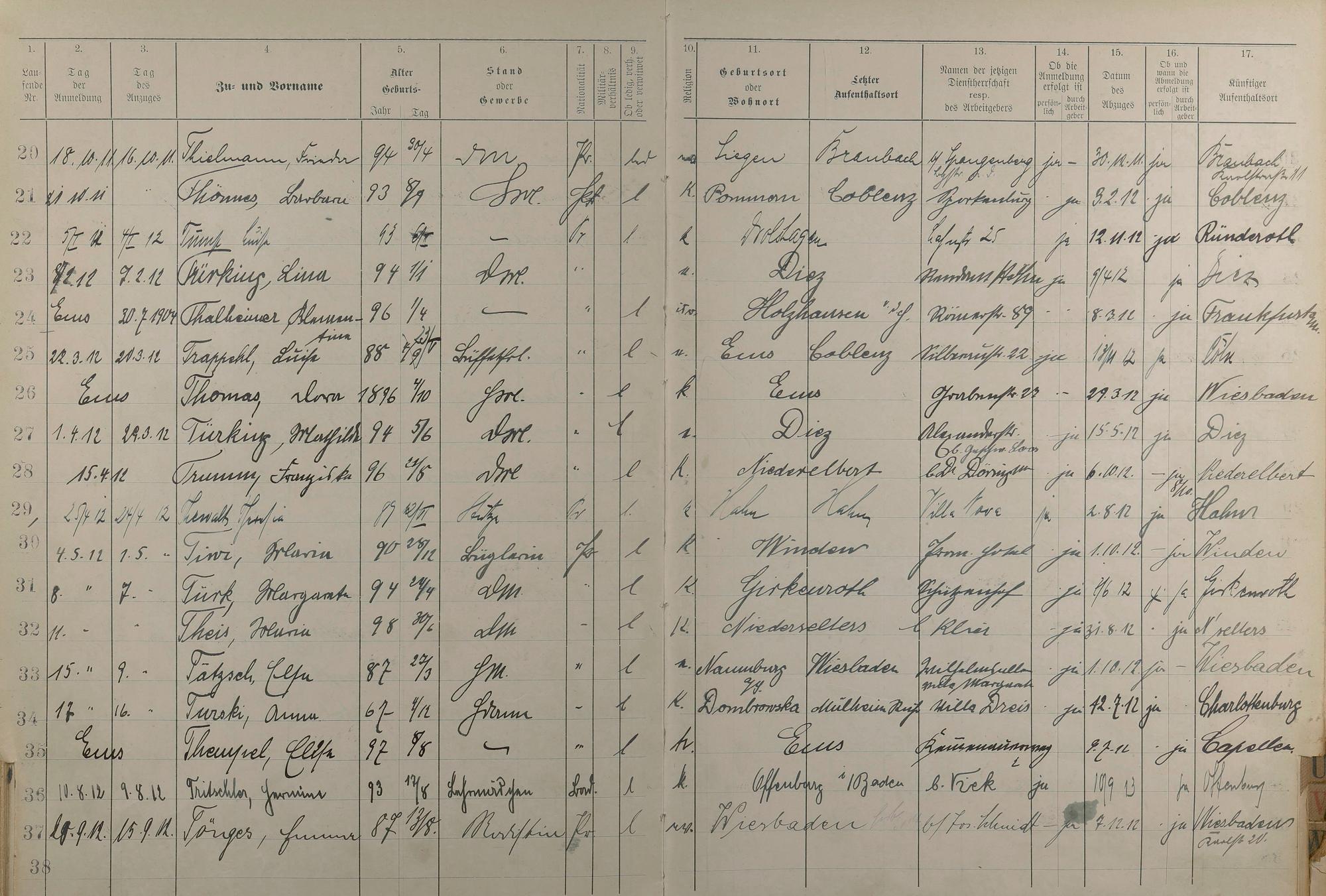 Melderegister der Gewerbegehilfinnen, Gesellinnen und Dienstbotinnen 1911 - Apr. 1915