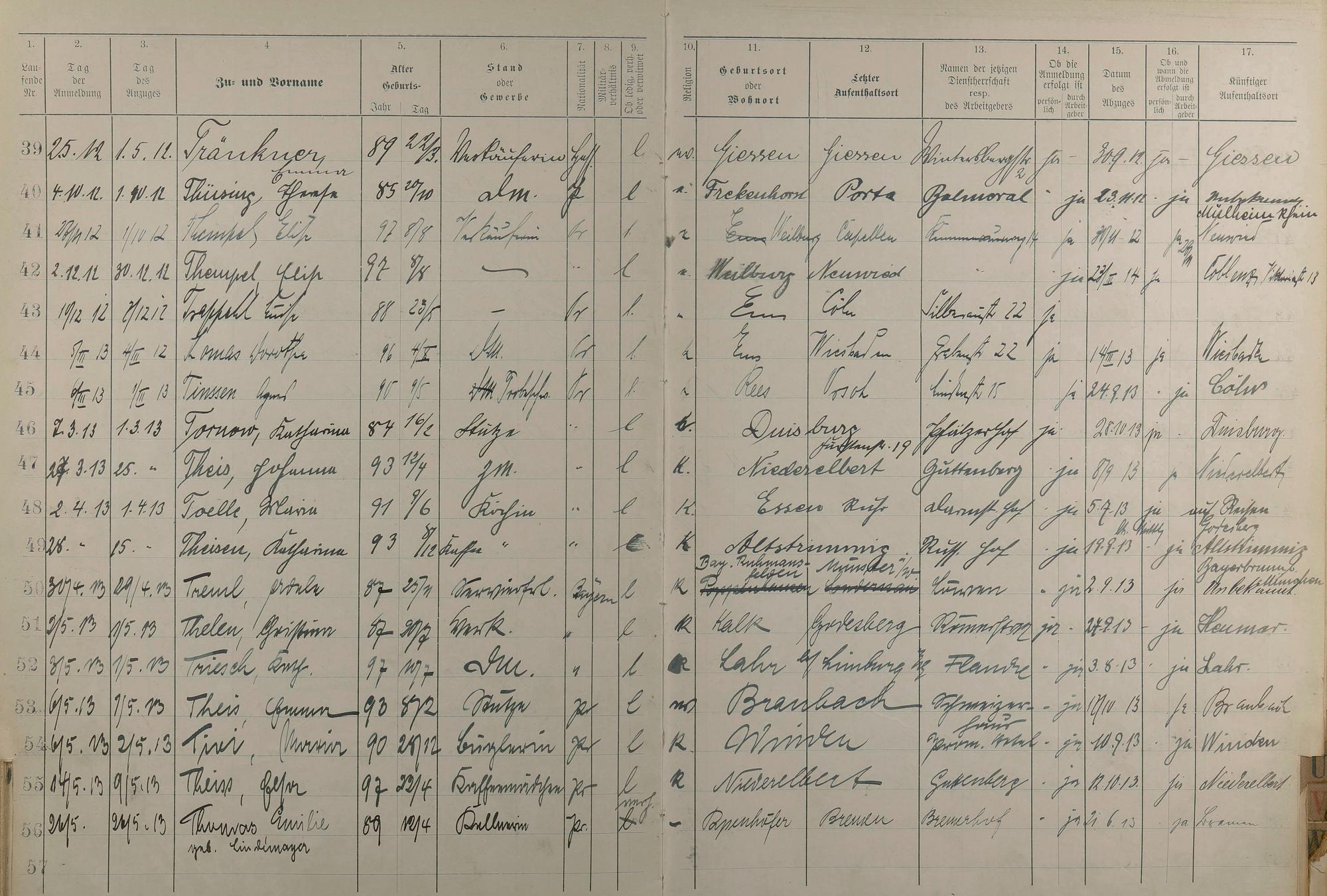 Melderegister der Gewerbegehilfinnen, Gesellinnen und Dienstbotinnen 1911 - Apr. 1915