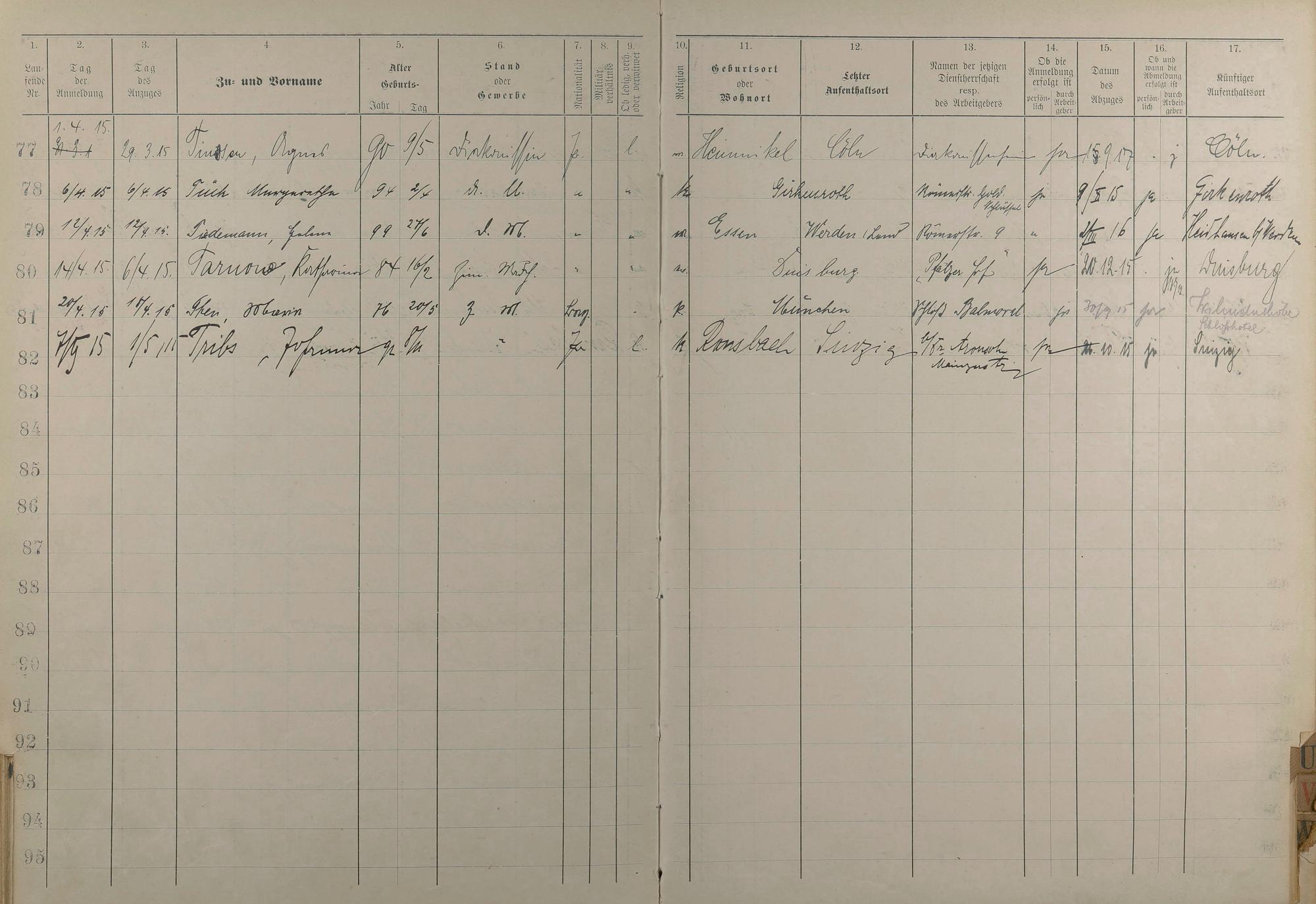 Melderegister der Gewerbegehilfinnen, Gesellinnen und Dienstbotinnen 1911 - Apr. 1915
