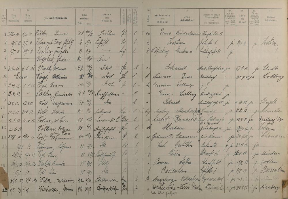 Melderegister der Gewerbegehilfinnen, Gesellinnen und Dienstbotinnen 1911 - Apr. 1915