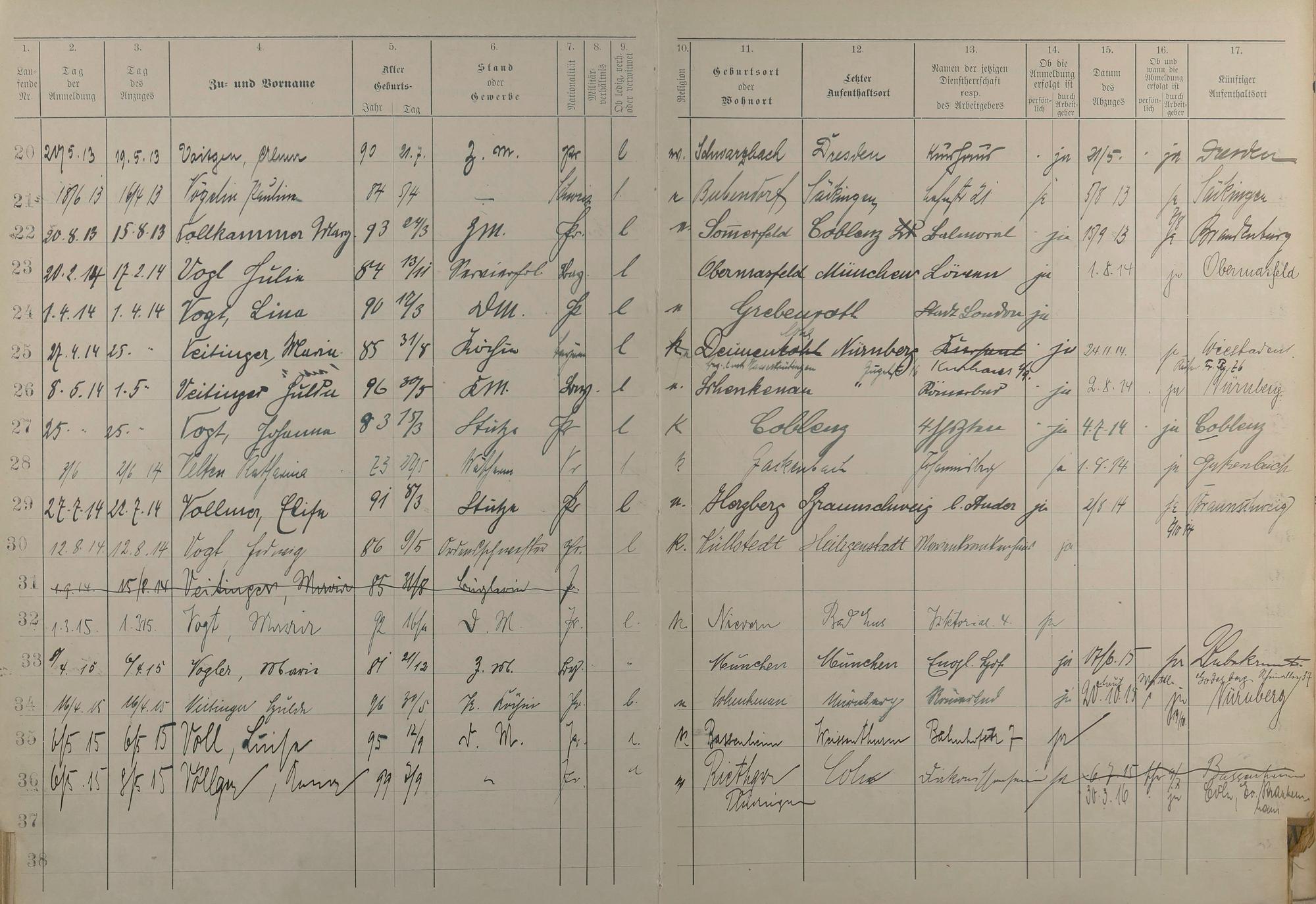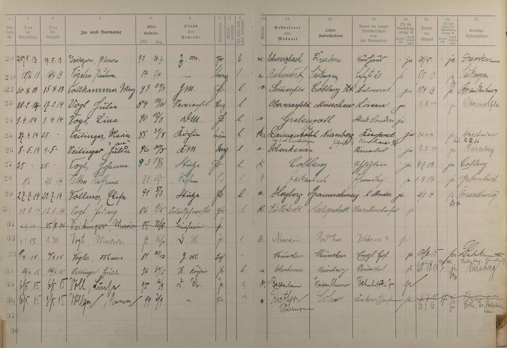 Melderegister der Gewerbegehilfinnen, Gesellinnen und Dienstbotinnen 1911 - Apr. 1915