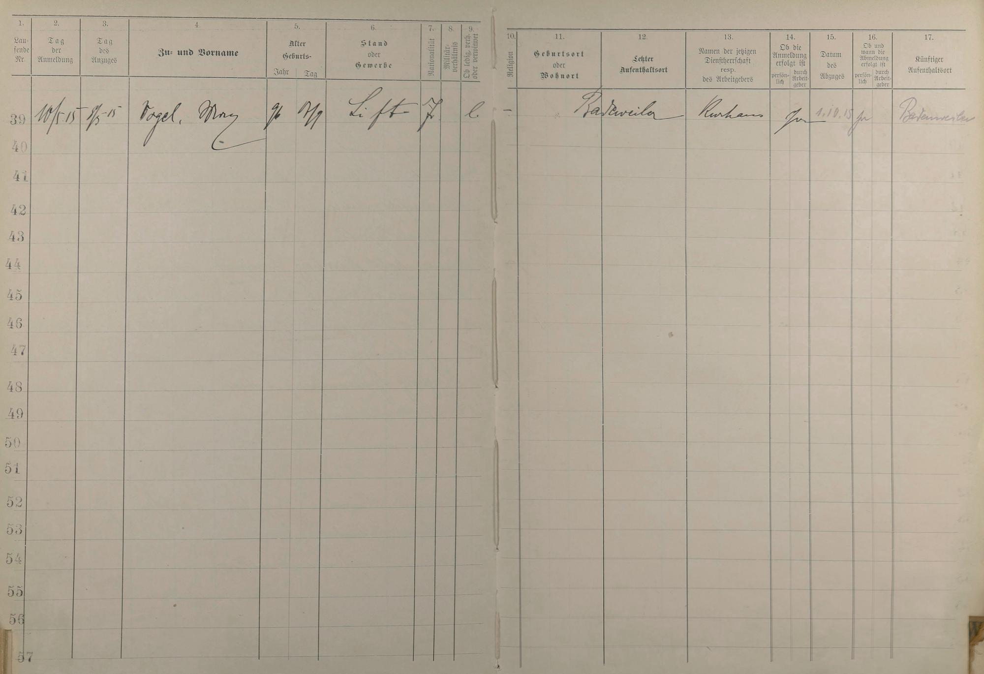 Melderegister der Gewerbegehilfinnen, Gesellinnen und Dienstbotinnen 1911 - Apr. 1915