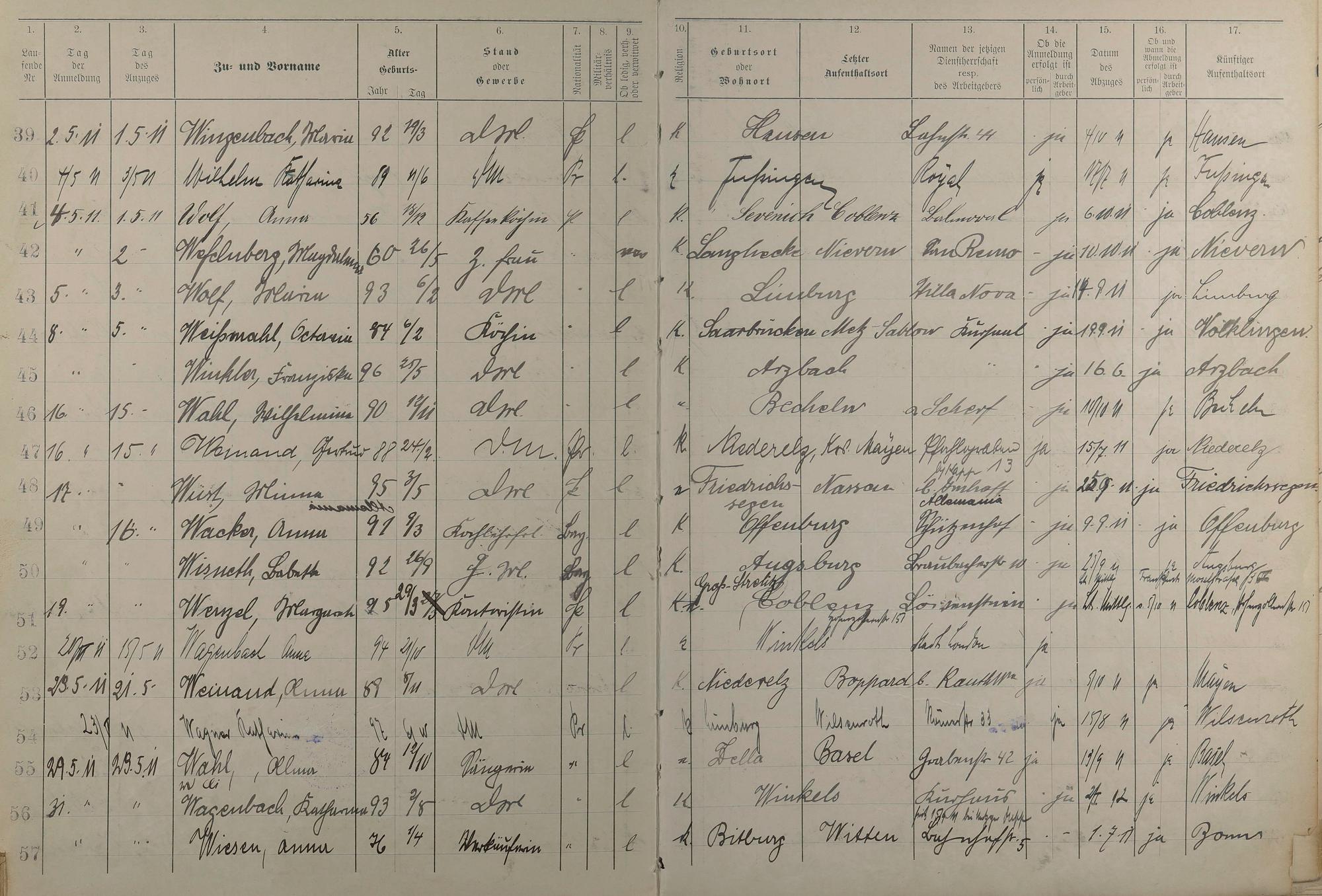 Melderegister der Gewerbegehilfinnen, Gesellinnen und Dienstbotinnen 1911 - Apr. 1915