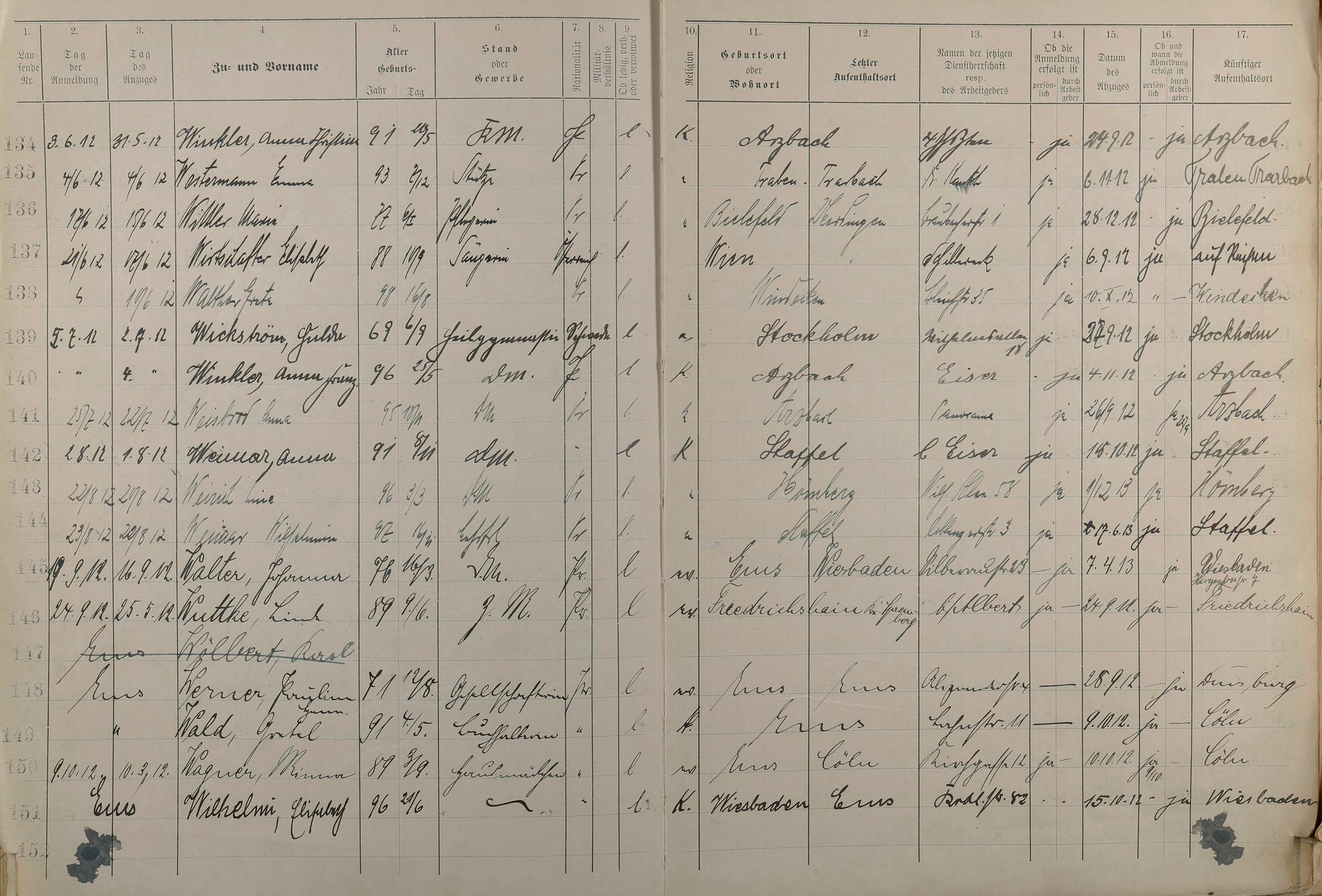 189: Melderegister der Gewerbegehilfinnen, Gesellinnen und Dienstbotinnen 1911 -...