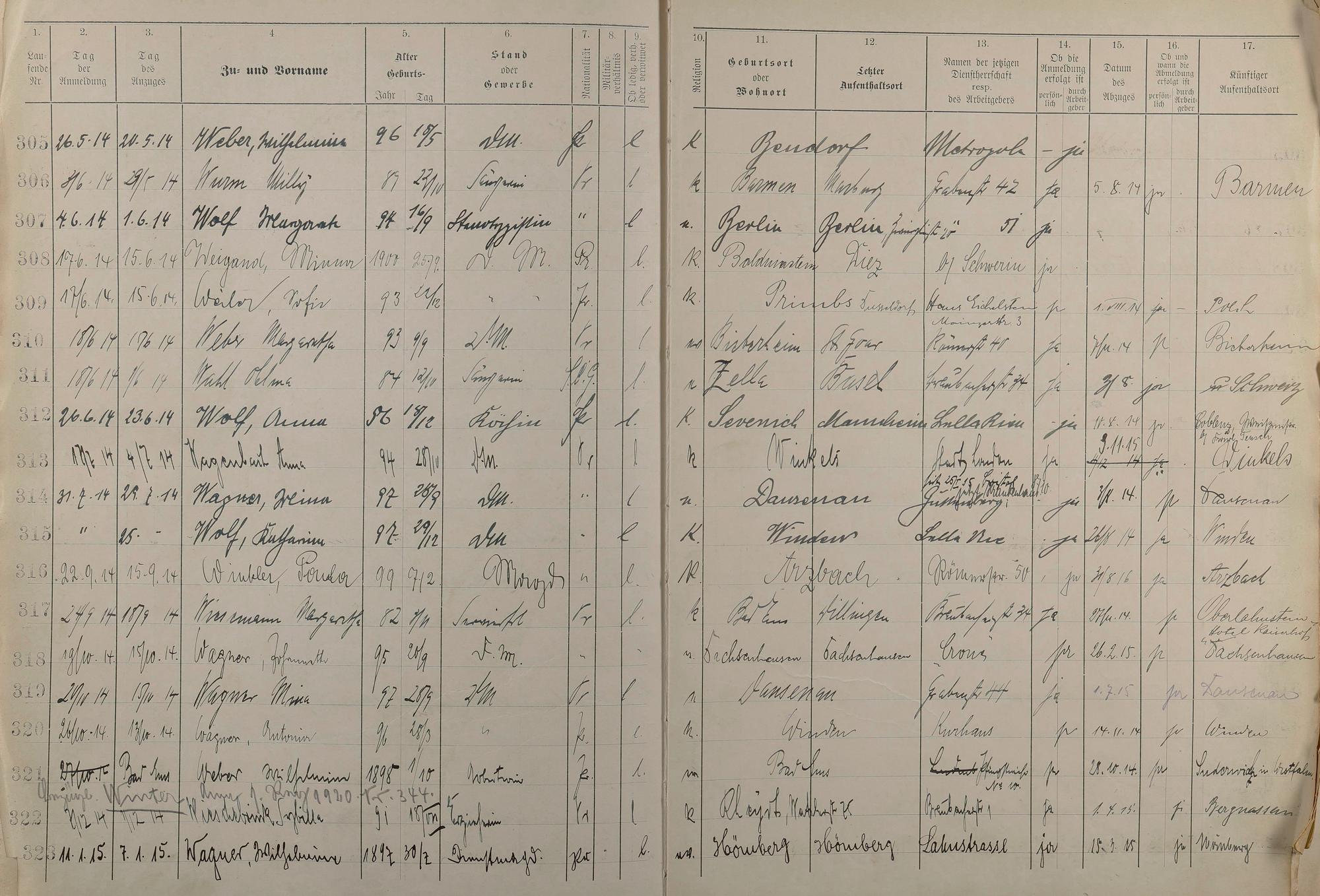 Melderegister der Gewerbegehilfinnen, Gesellinnen und Dienstbotinnen 1911 - Apr. 1915