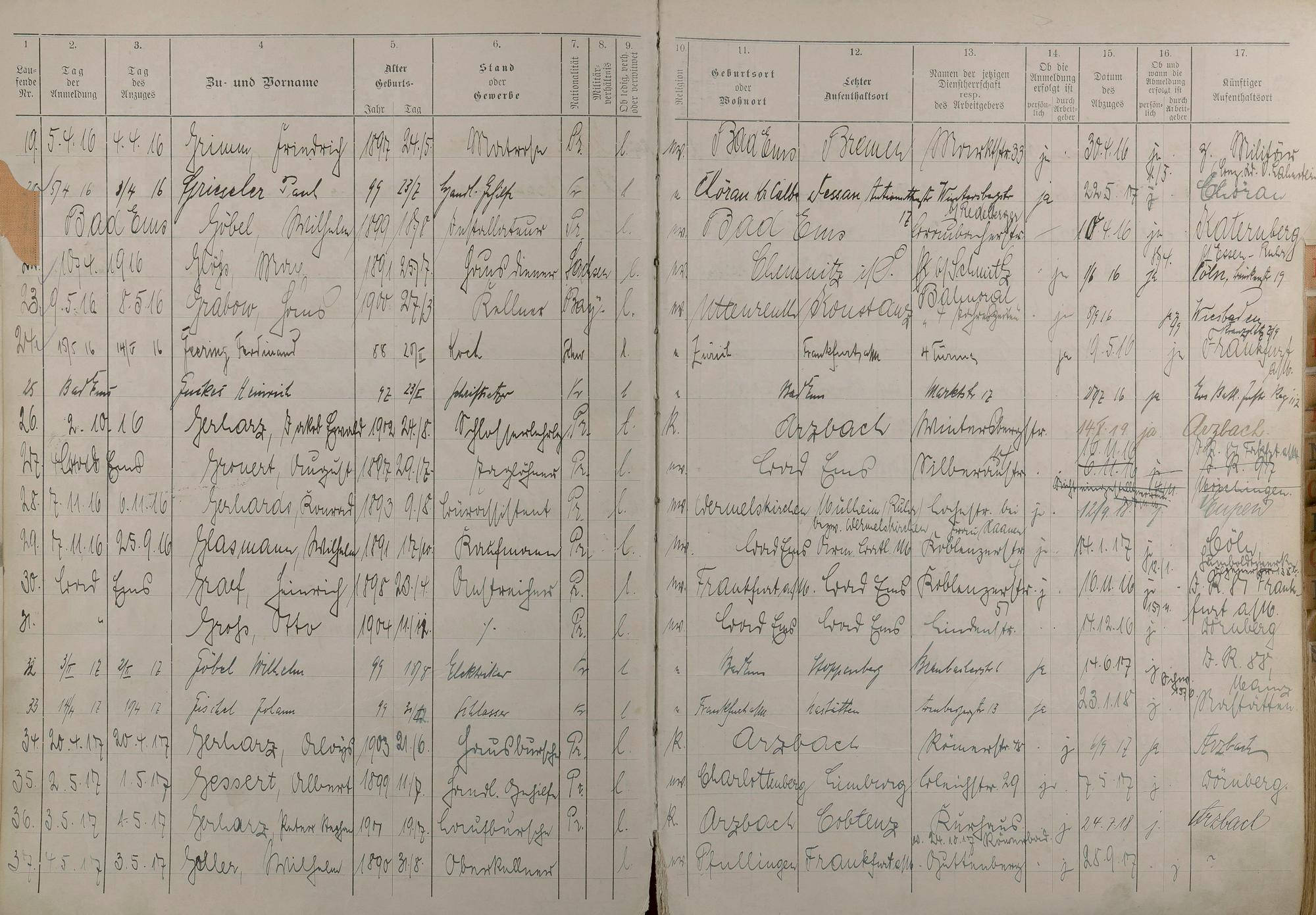 Melderegister der Gewerbegehilfen, Gesellen und Dienstboten Mai 1915 - Mai 1923