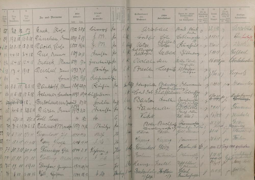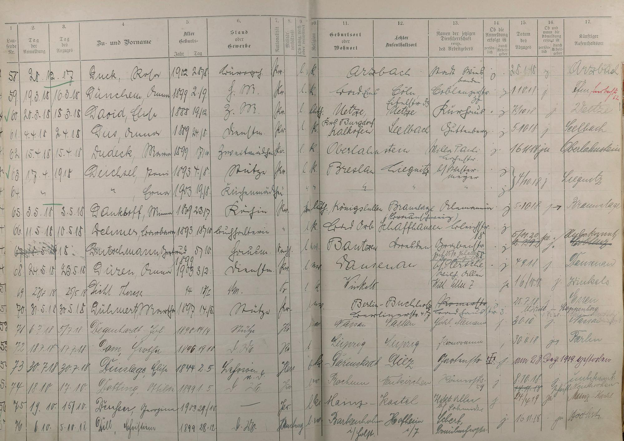 Melderegister der Gewerbegehilfinnen, Gesellinnen und Dienstbotinnen Mai 1915 - Mai 1923