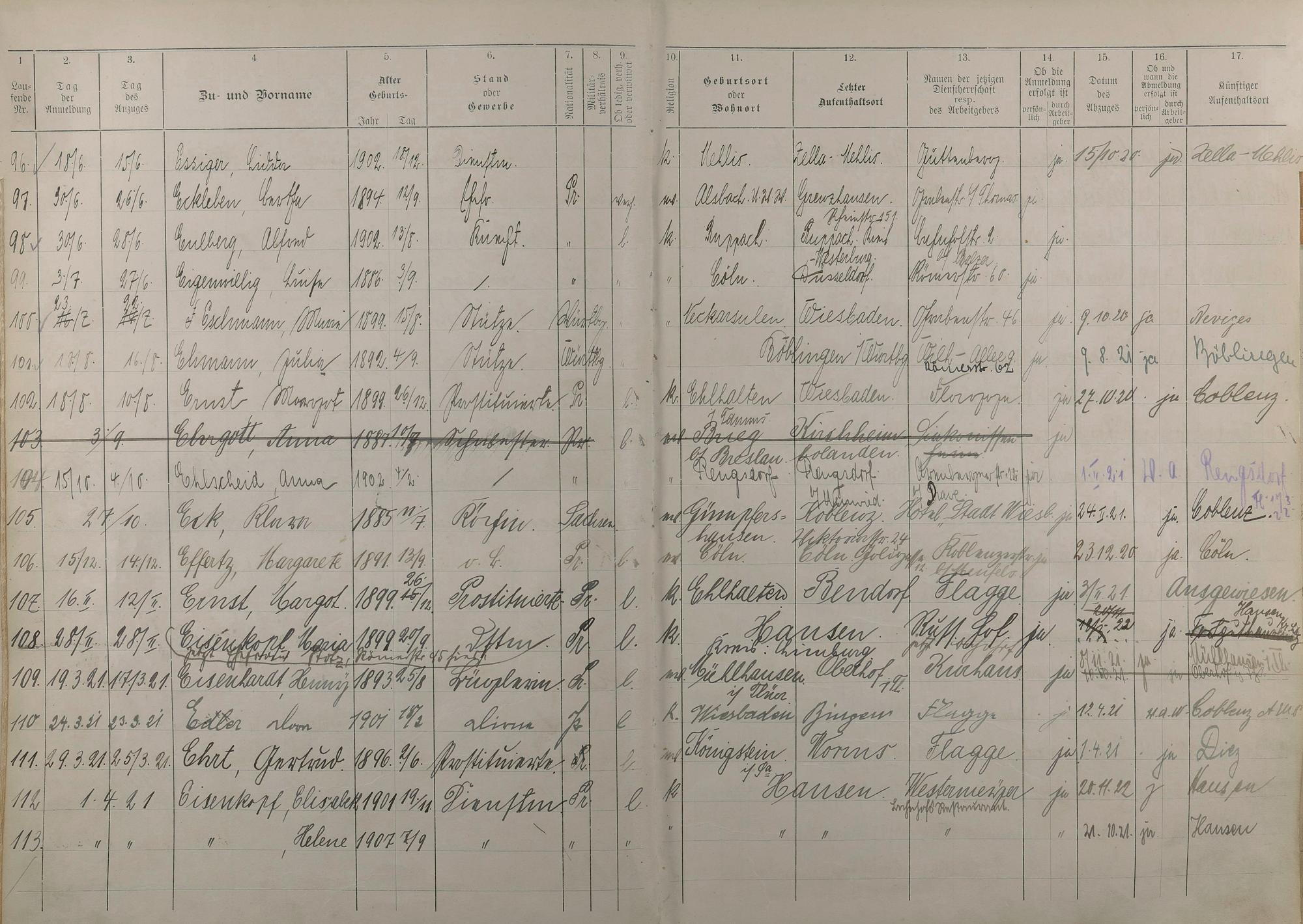 Melderegister der Gewerbegehilfinnen, Gesellinnen und Dienstbotinnen Mai 1915 - Mai 1923