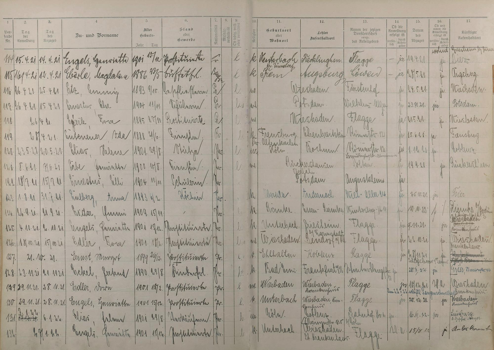 Melderegister der Gewerbegehilfinnen, Gesellinnen und Dienstbotinnen Mai 1915 - Mai 1923