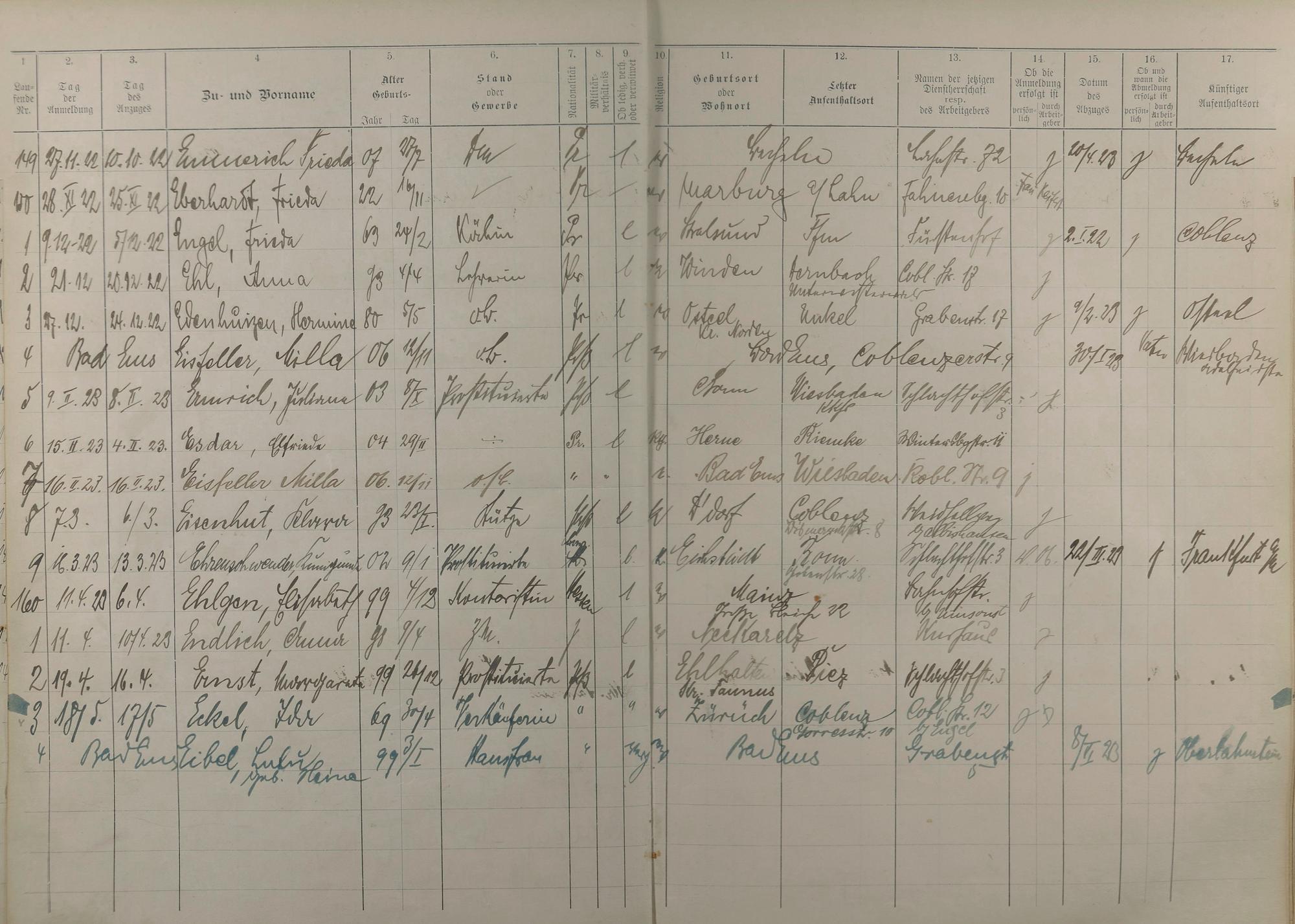 Melderegister der Gewerbegehilfinnen, Gesellinnen und Dienstbotinnen Mai 1915 - Mai 1923