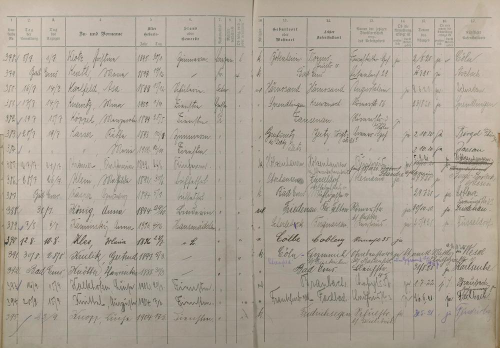 Melderegister der Gewerbegehilfinnen, Gesellinnen und Dienstbotinnen Mai 1915 - Mai 1923