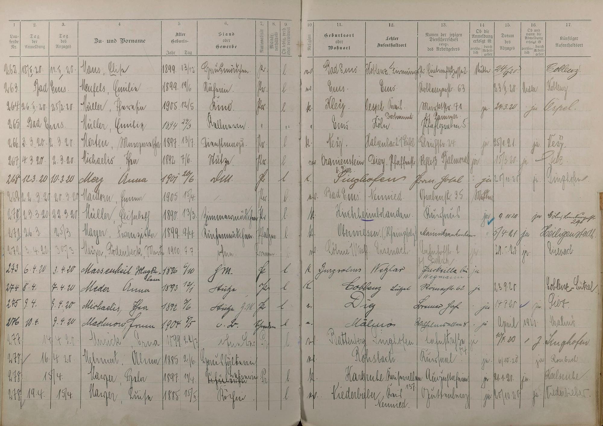 Melderegister der Gewerbegehilfinnen, Gesellinnen und Dienstbotinnen Mai 1915 - Mai 1923