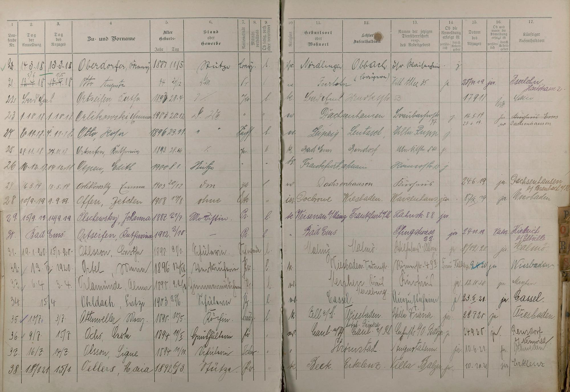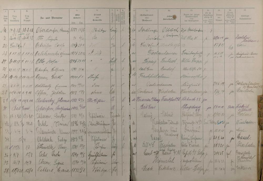 Melderegister der Gewerbegehilfinnen, Gesellinnen und Dienstbotinnen Mai 1915 - Mai 1923