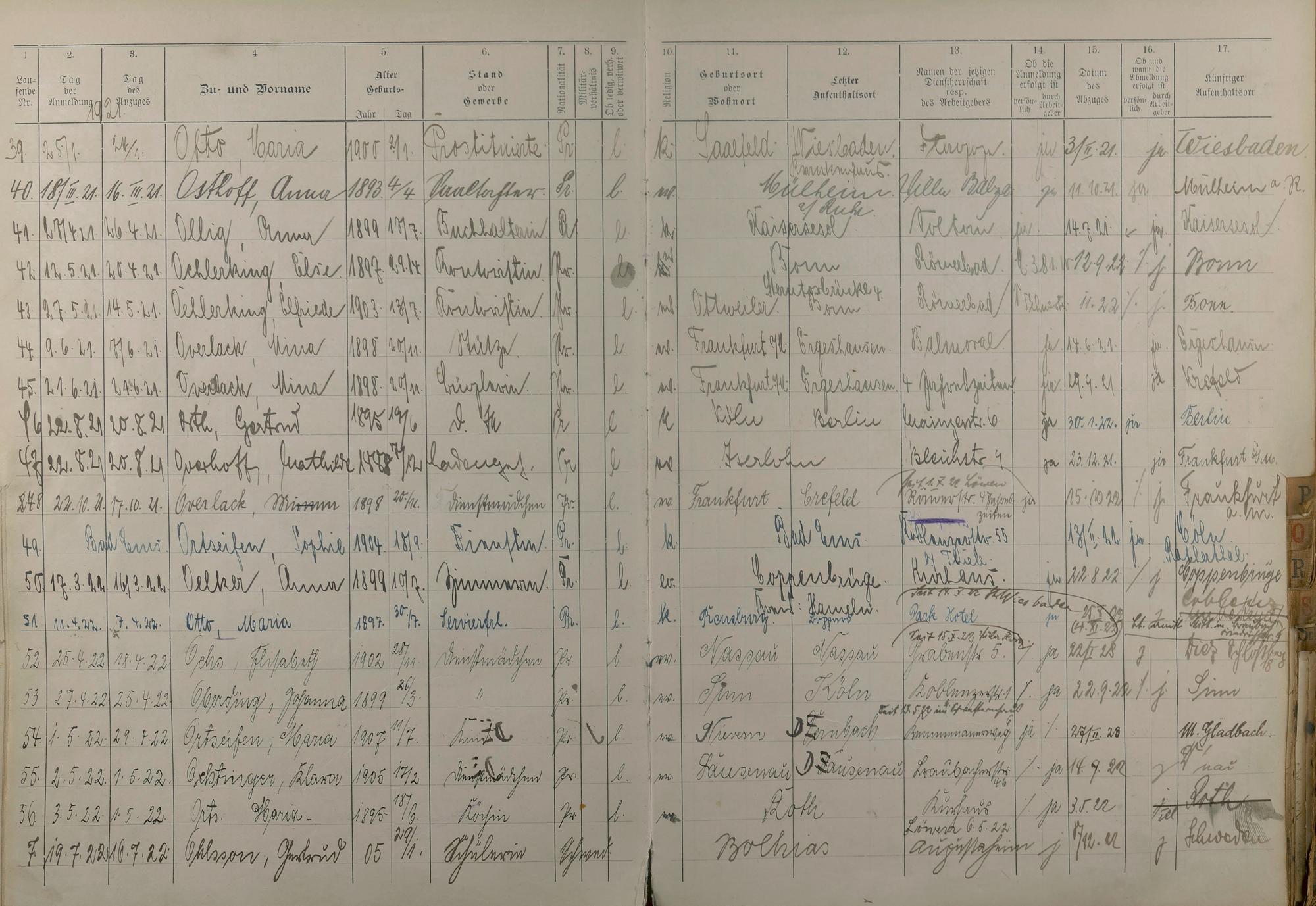 Melderegister der Gewerbegehilfinnen, Gesellinnen und Dienstbotinnen Mai 1915 - Mai 1923