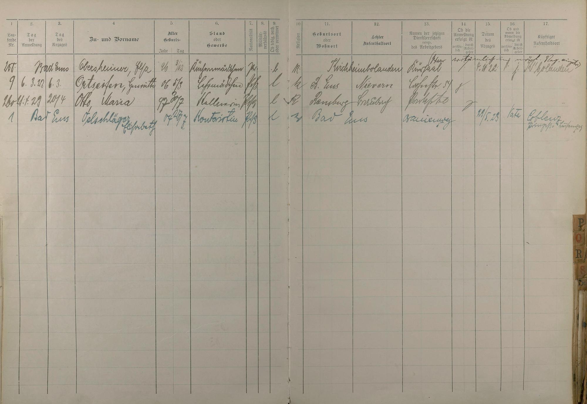 Melderegister der Gewerbegehilfinnen, Gesellinnen und Dienstbotinnen Mai 1915 - Mai 1923