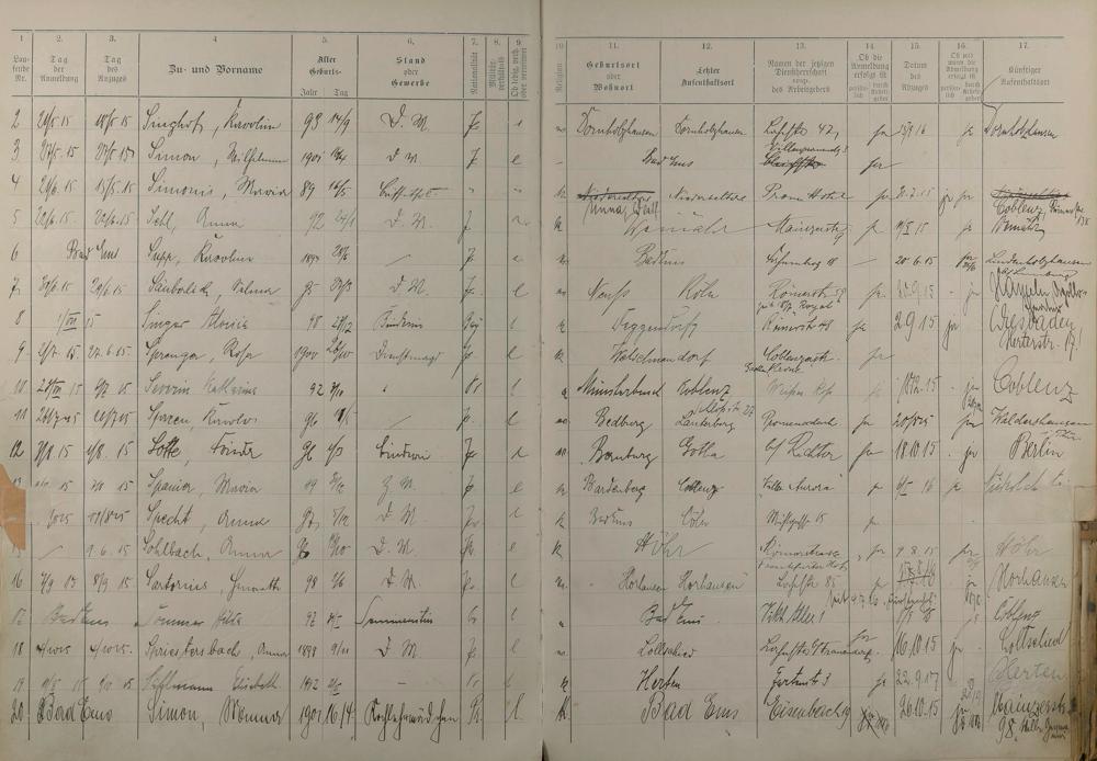 Melderegister der Gewerbegehilfinnen, Gesellinnen und Dienstbotinnen Mai 1915 - Mai 1923