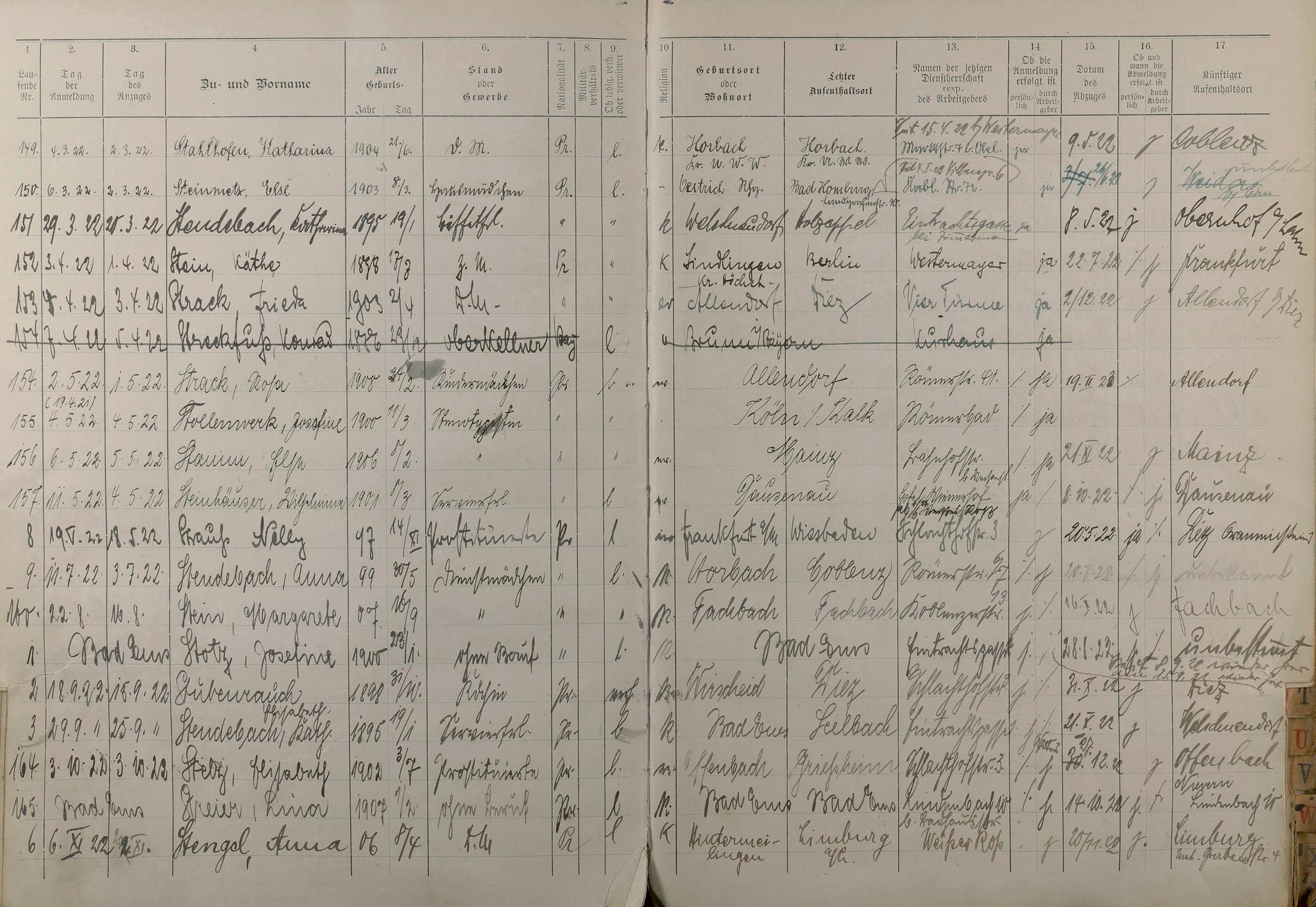 Melderegister der Gewerbegehilfinnen, Gesellinnen und Dienstbotinnen Mai 1915 - Mai 1923