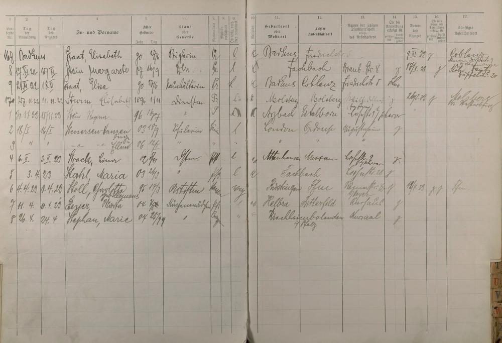 Melderegister der Gewerbegehilfinnen, Gesellinnen und Dienstbotinnen Mai 1915 - Mai 1923