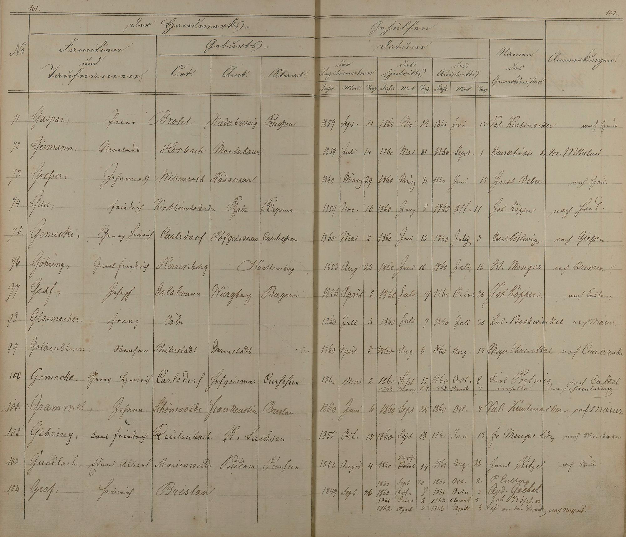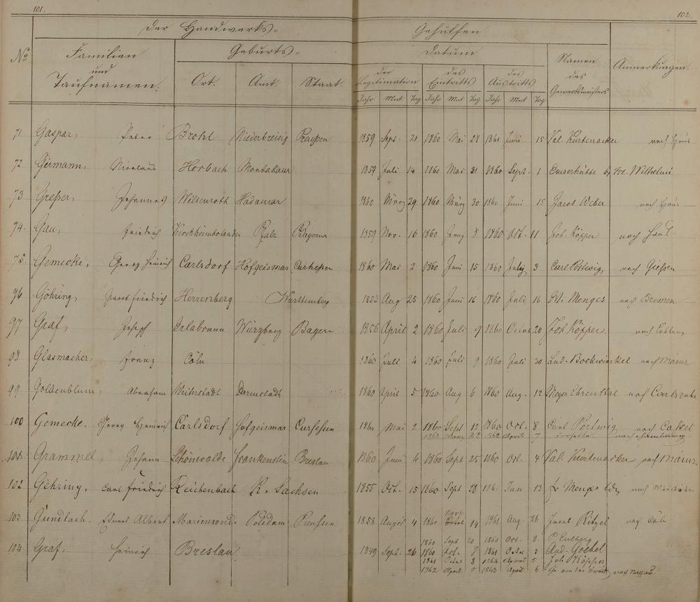 172: Melderegister der Gewerbegehilfen
