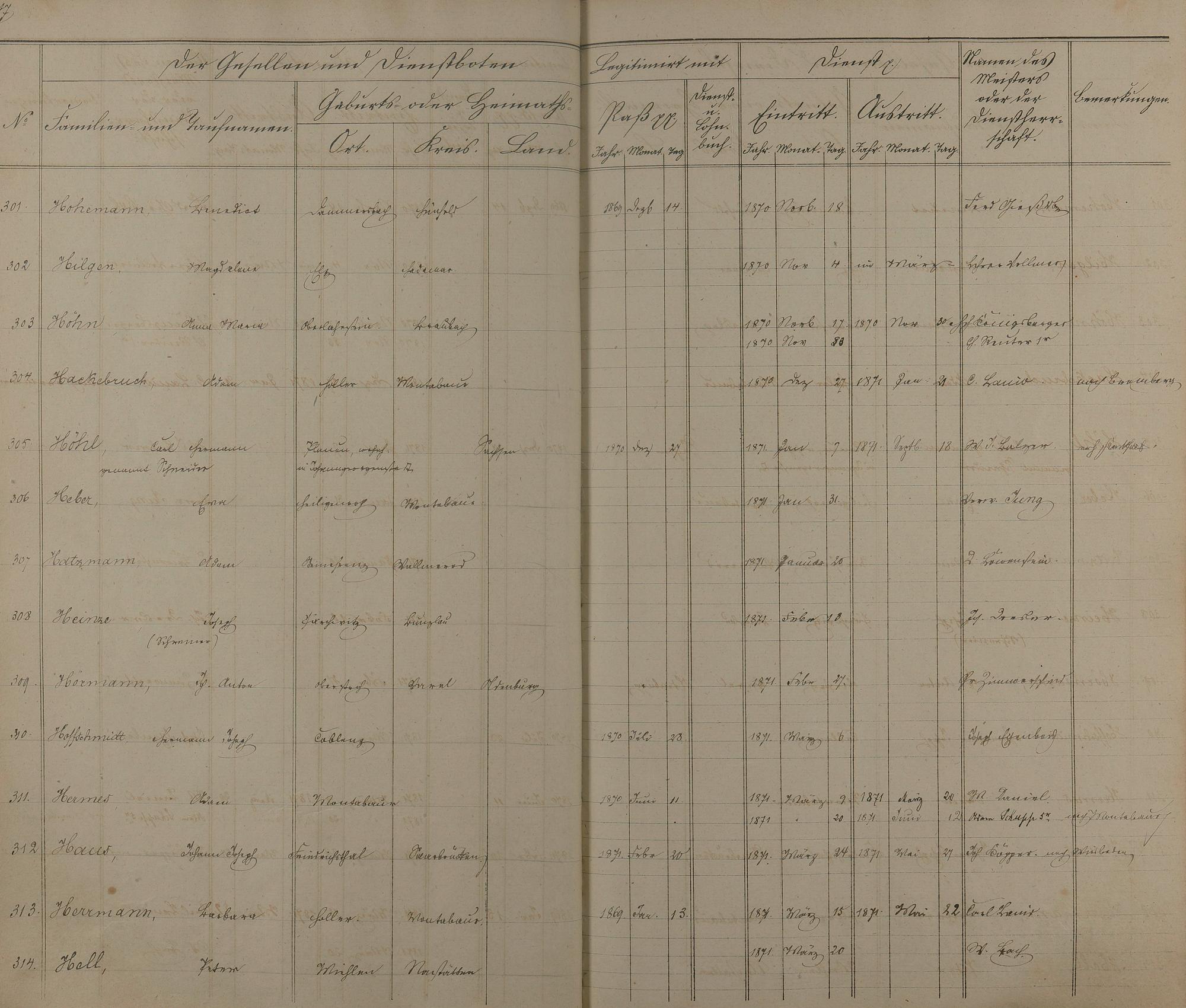 Melderegister der Gesellen und Dienstboten