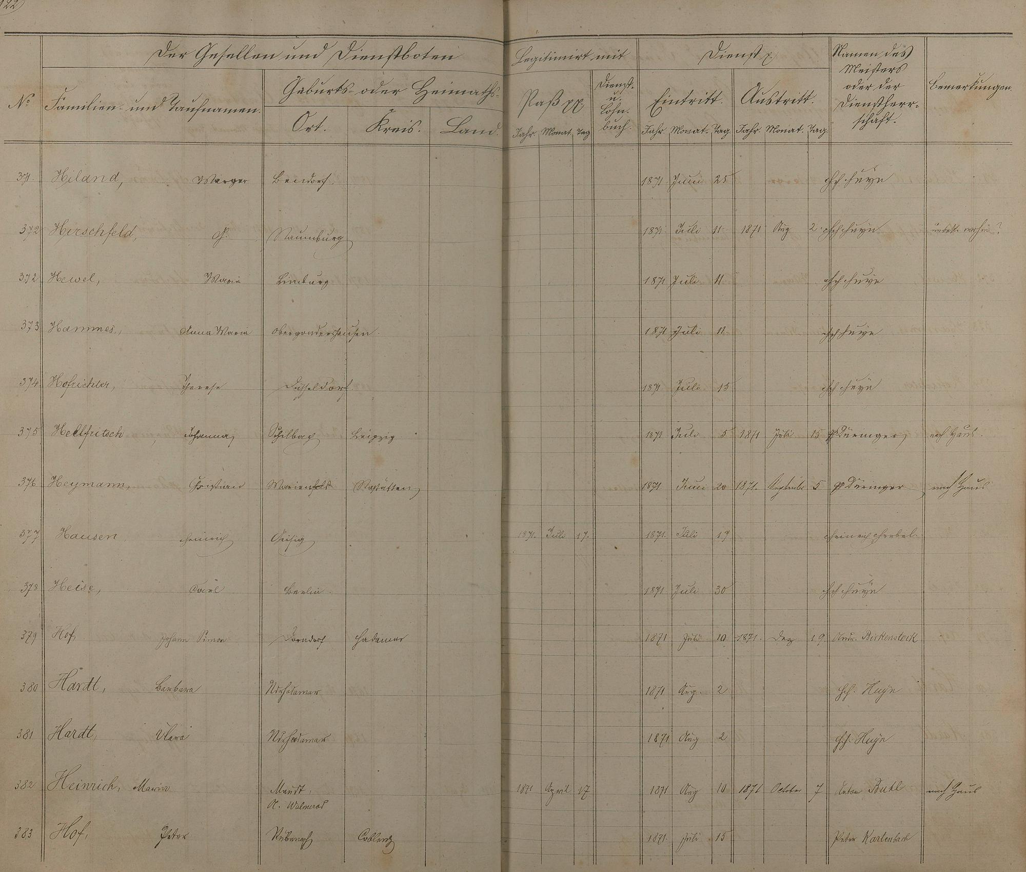 Melderegister der Gesellen und Dienstboten
