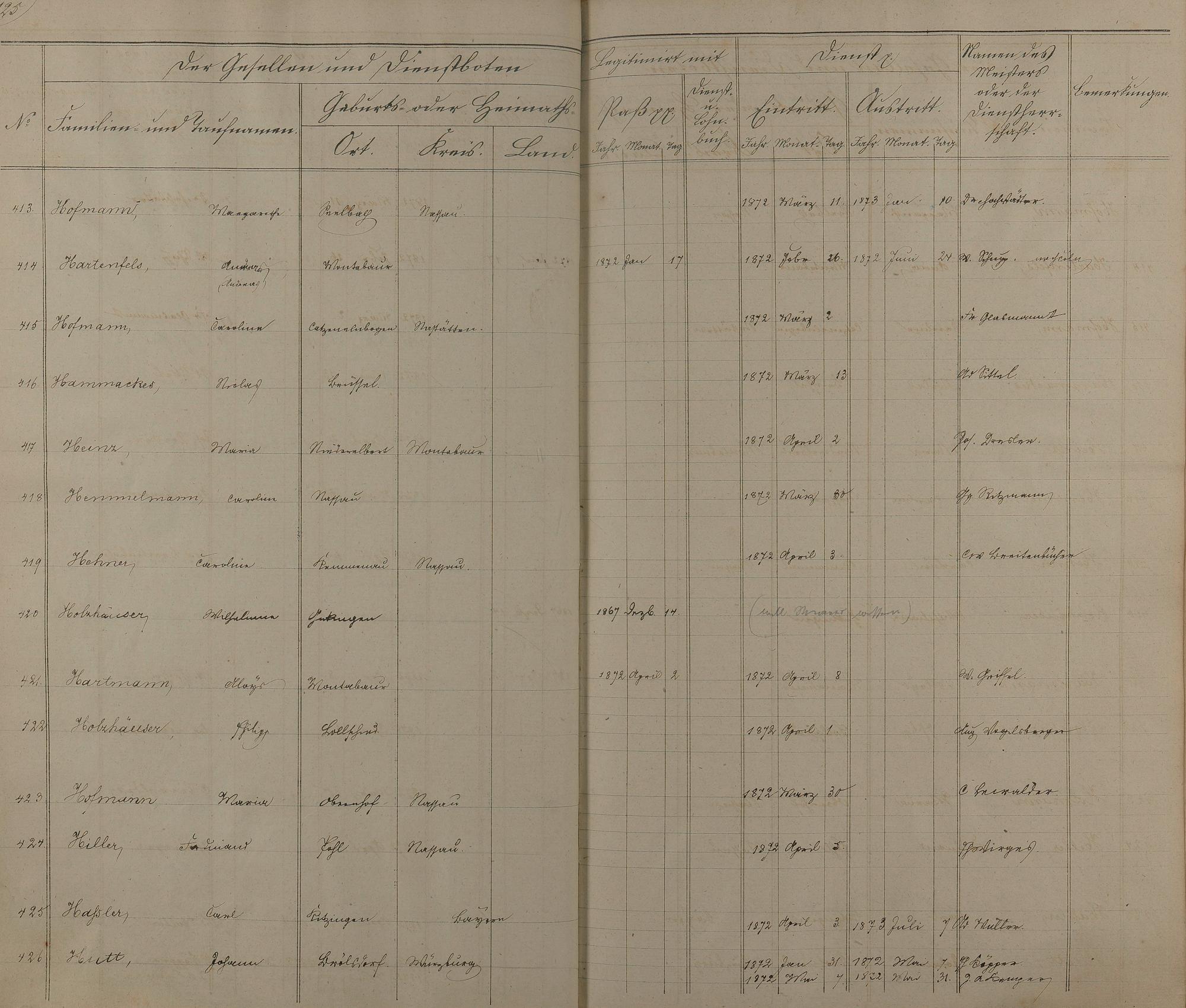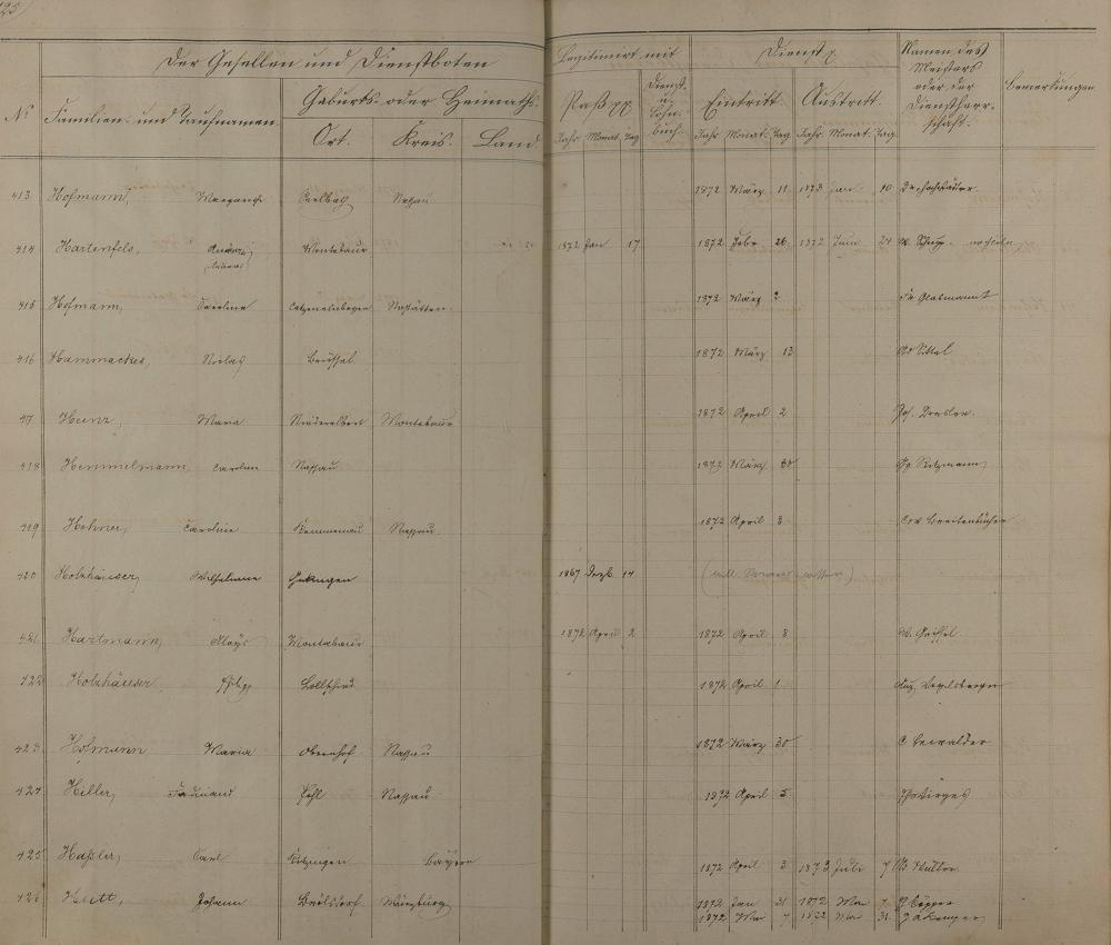 Melderegister der Gesellen und Dienstboten
