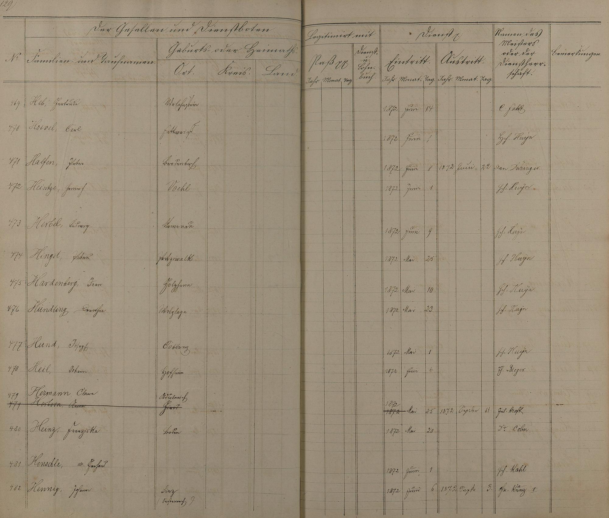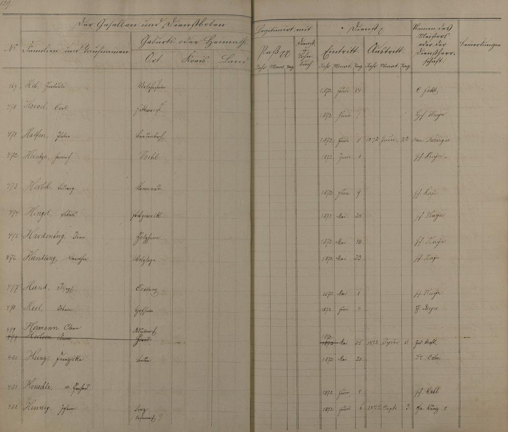 Melderegister der Gesellen und Dienstboten