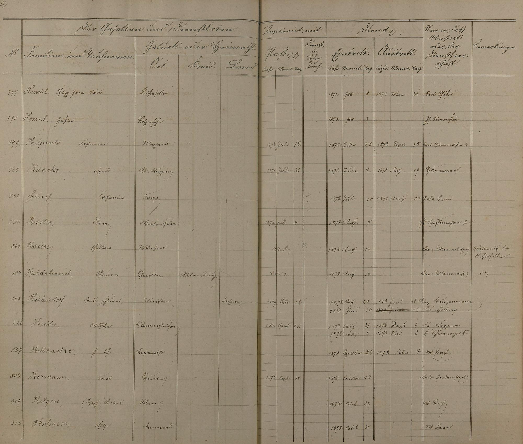 Melderegister der Gesellen und Dienstboten