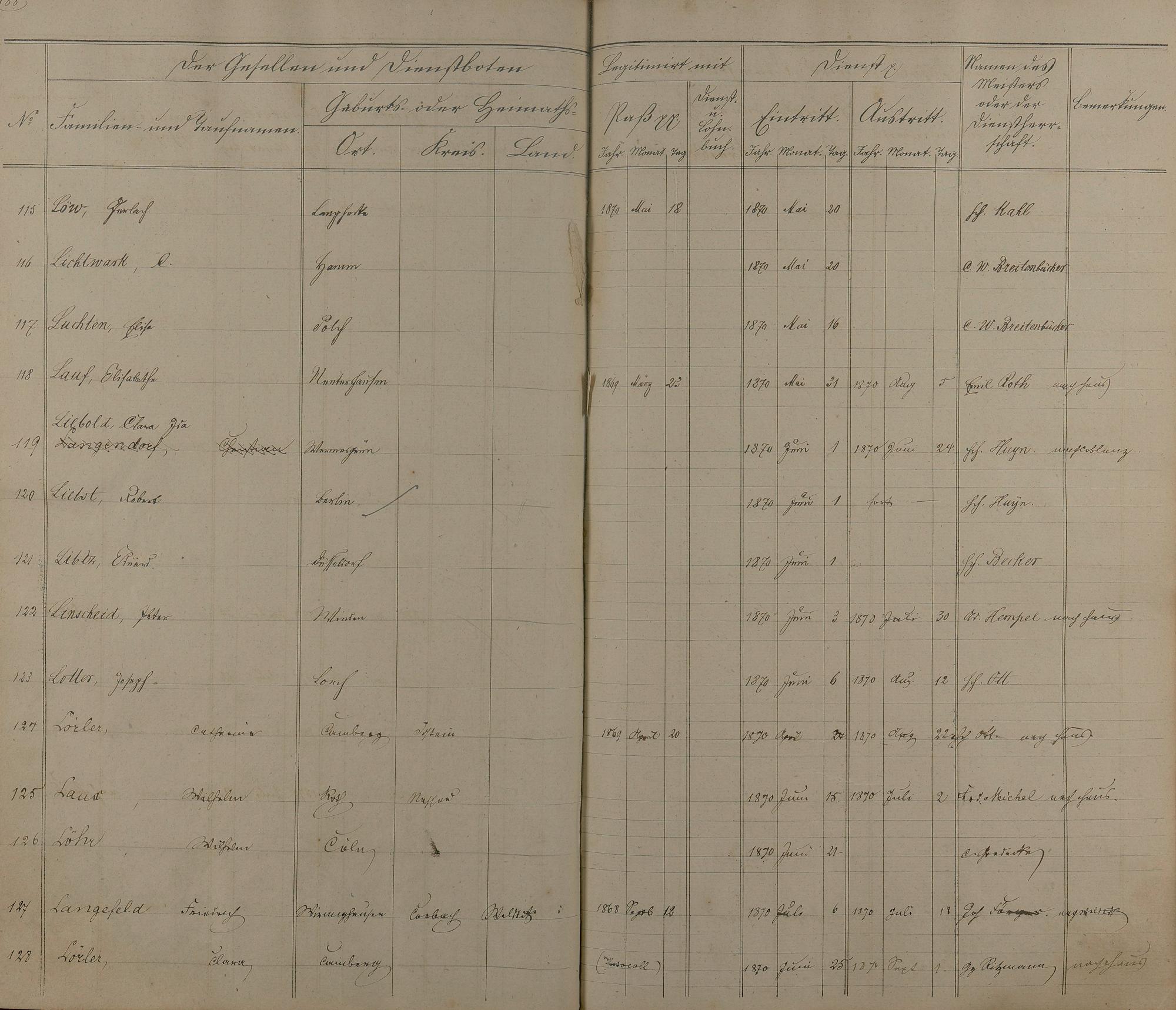 Melderegister der Gesellen und Dienstboten
