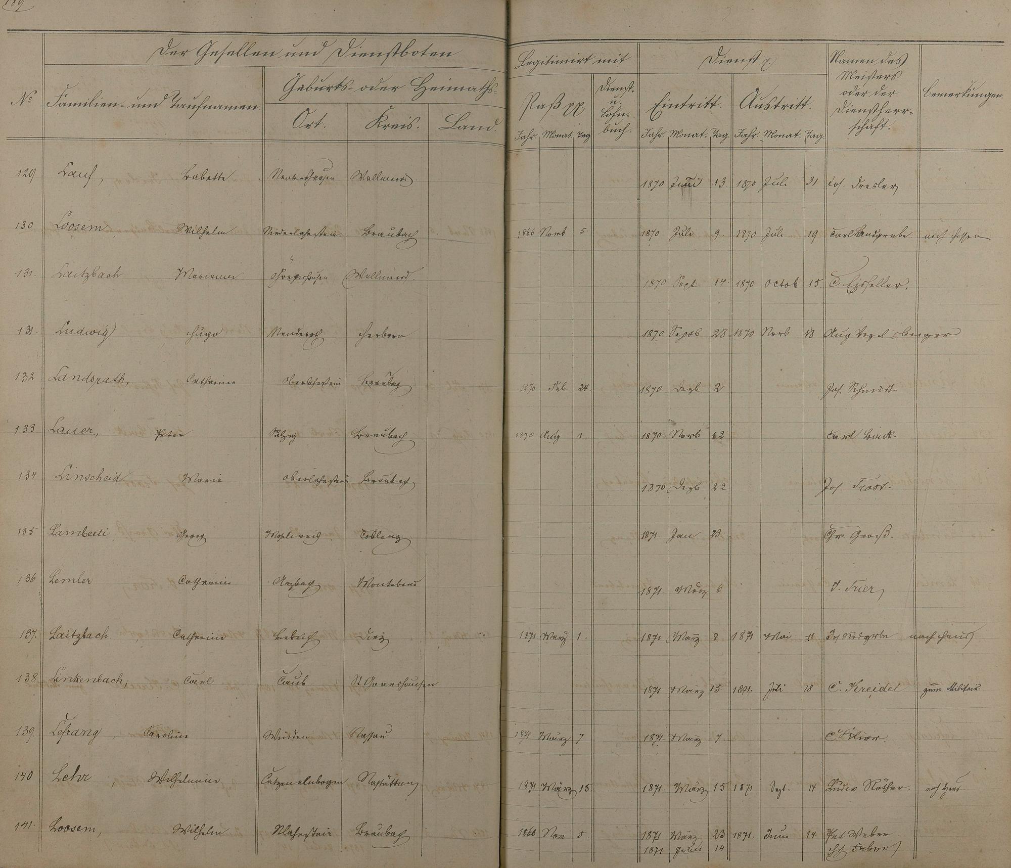 Melderegister der Gesellen und Dienstboten