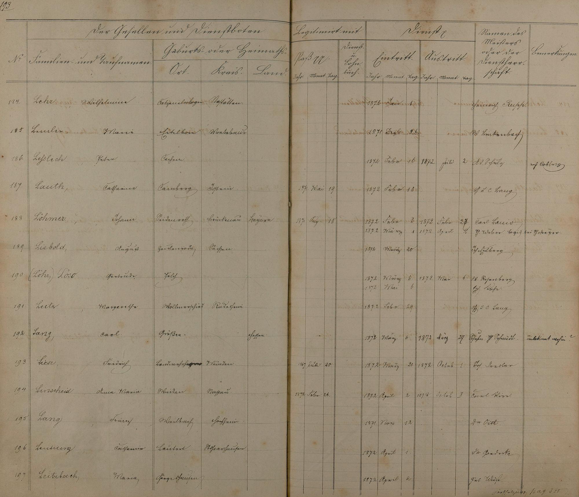 Melderegister der Gesellen und Dienstboten