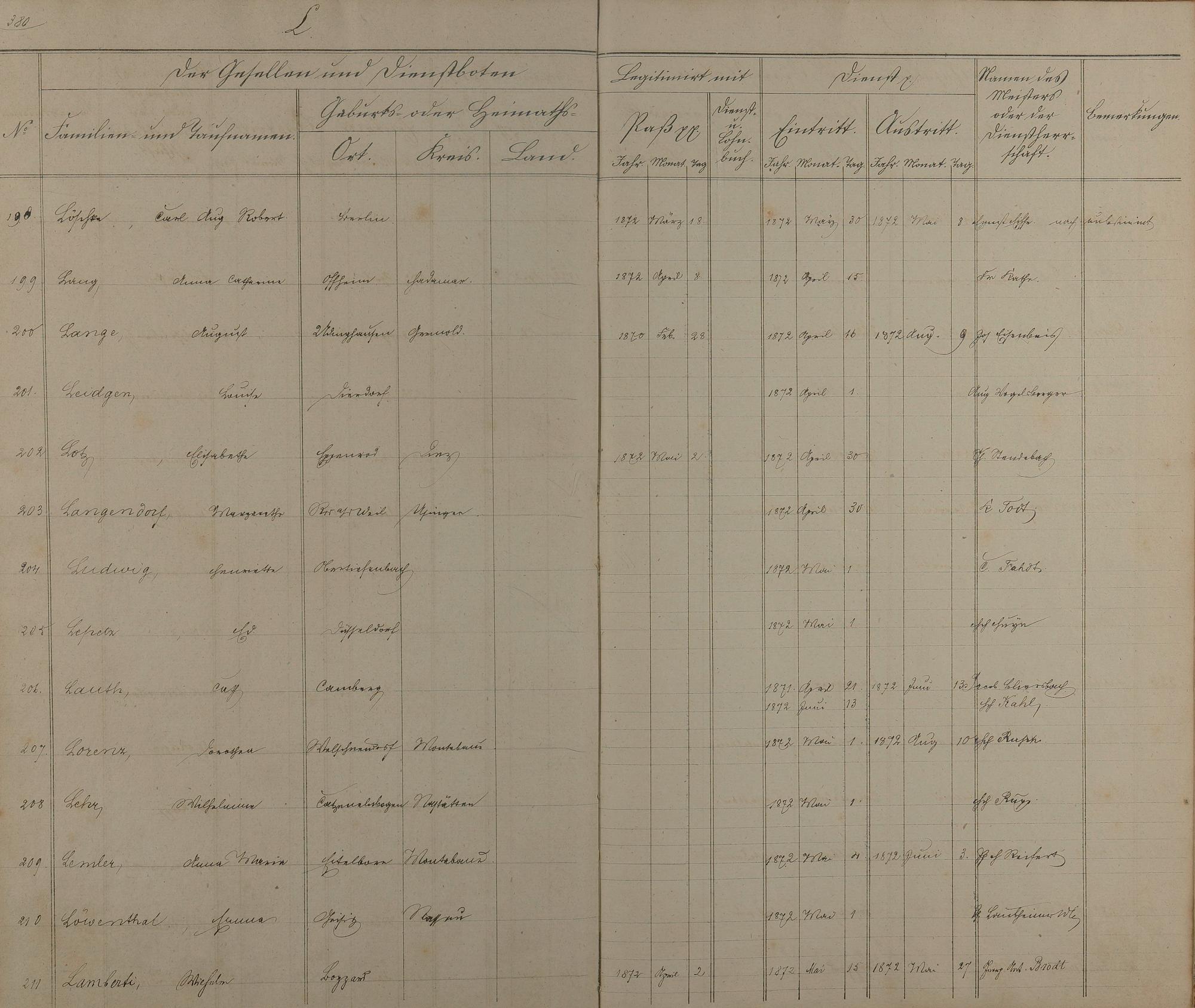 174: Melderegister der Gesellen und Dienstboten