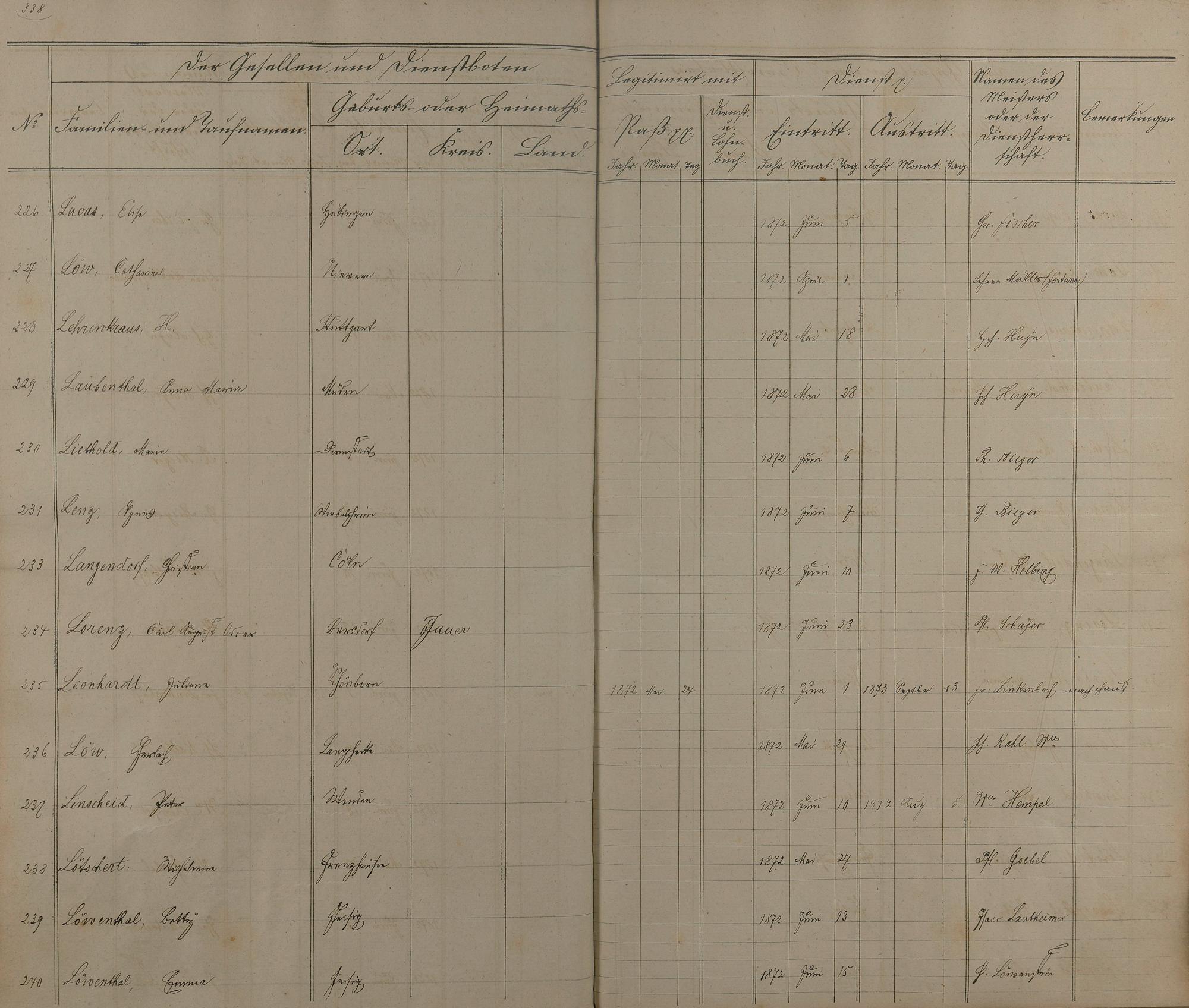 Melderegister der Gesellen und Dienstboten
