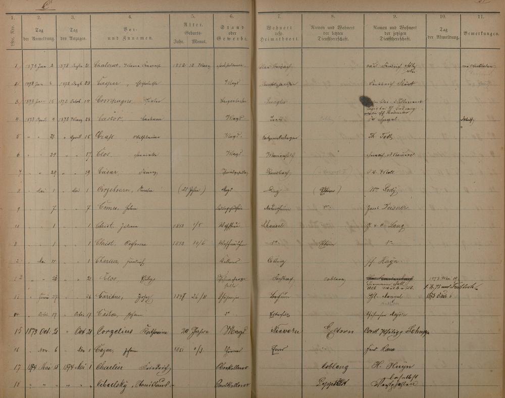 Melderegister der Gewerbegehilfen, Gesellen und Dienstboten