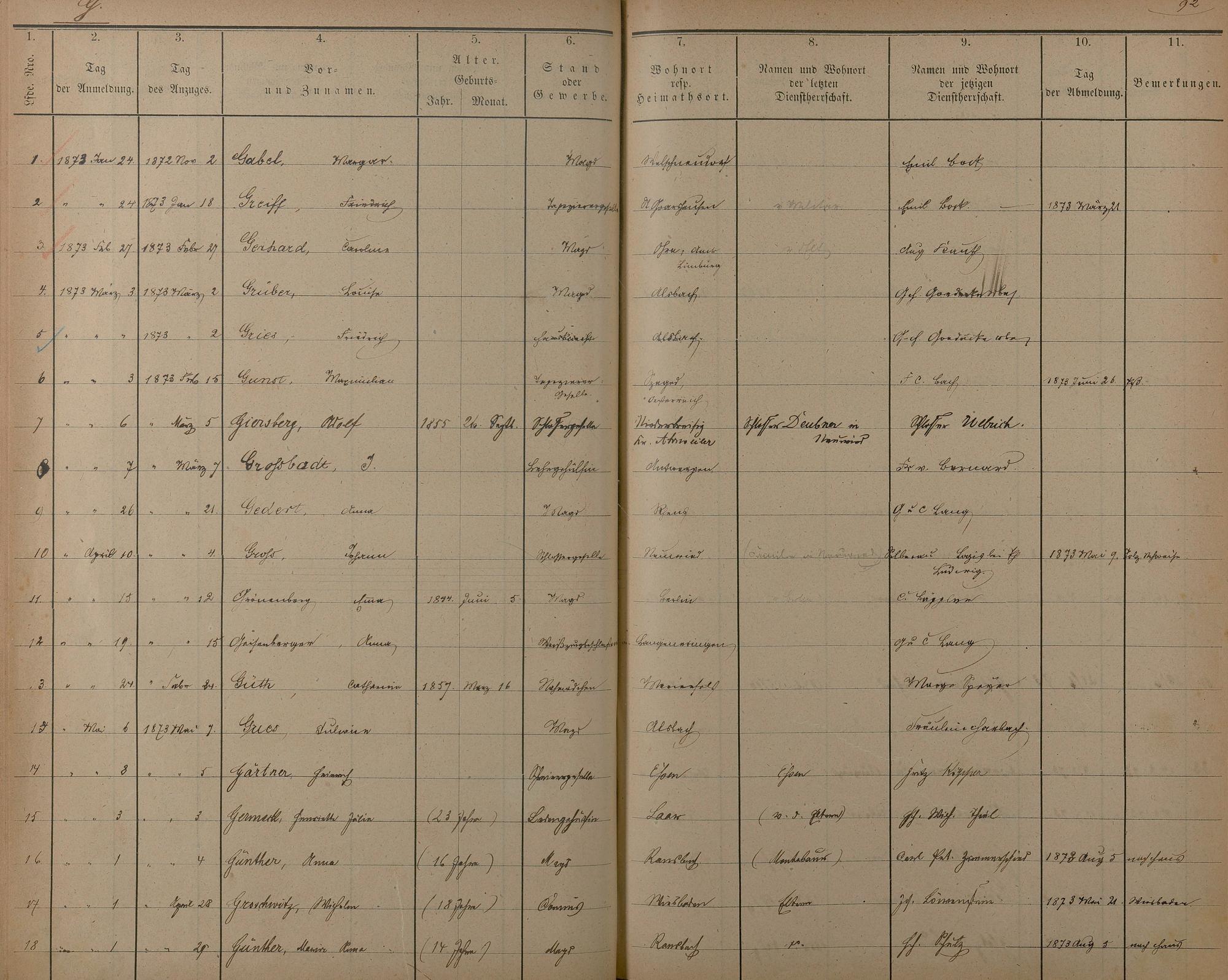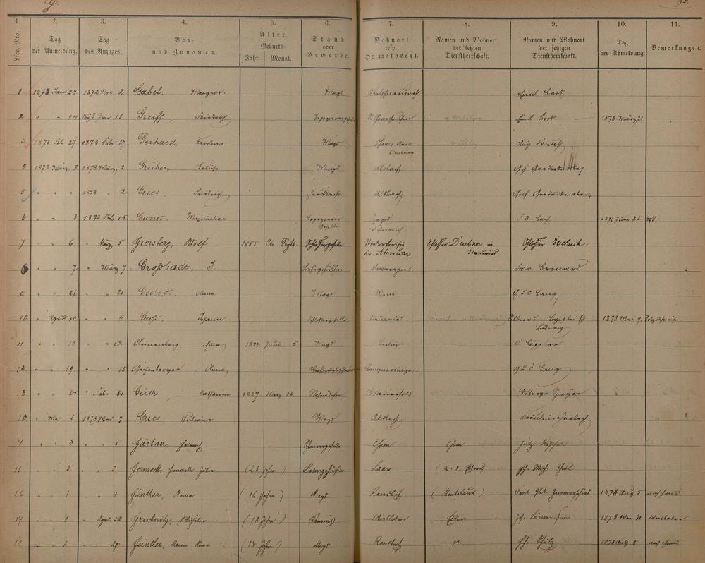 Melderegister der Gewerbegehilfen, Gesellen und Dienstboten