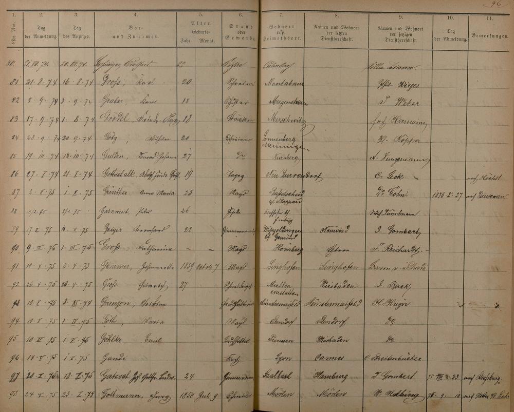 Melderegister der Gewerbegehilfen, Gesellen und Dienstboten
