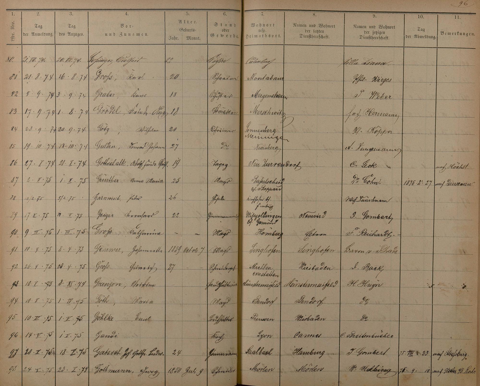 175: Melderegister der Gewerbegehilfen, Gesellen und Dienstboten