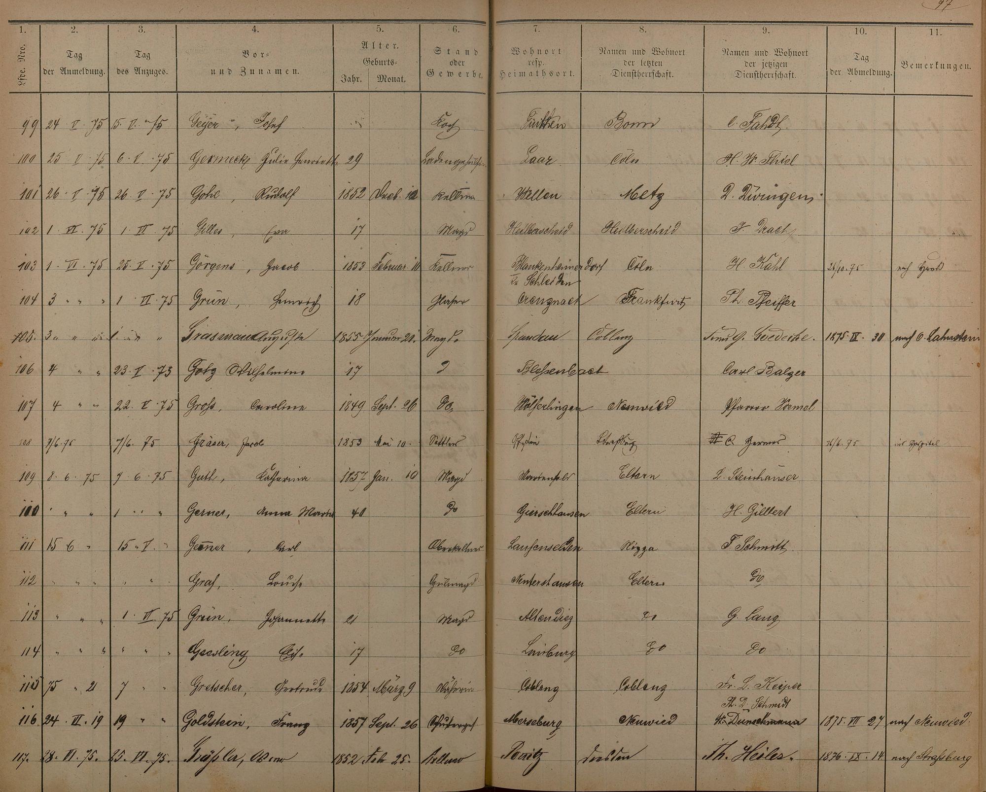 175: Melderegister der Gewerbegehilfen, Gesellen und Dienstboten